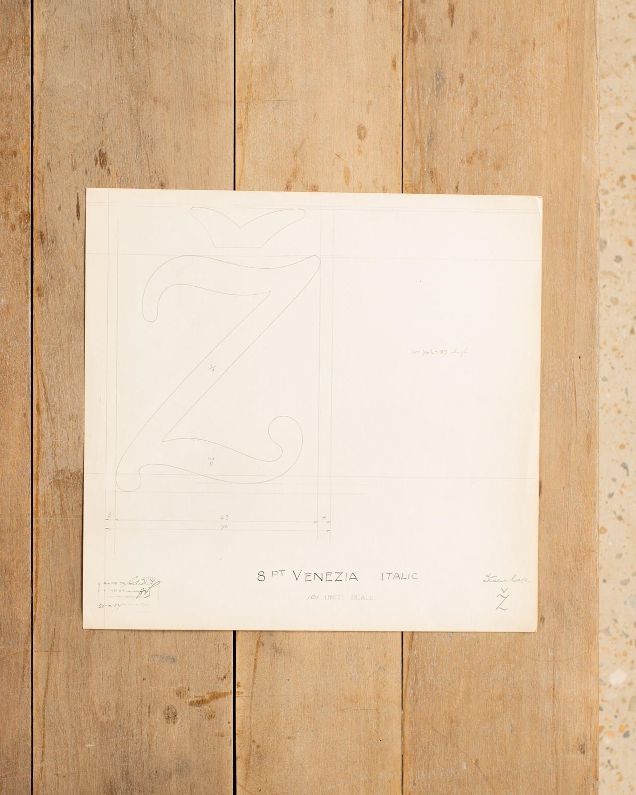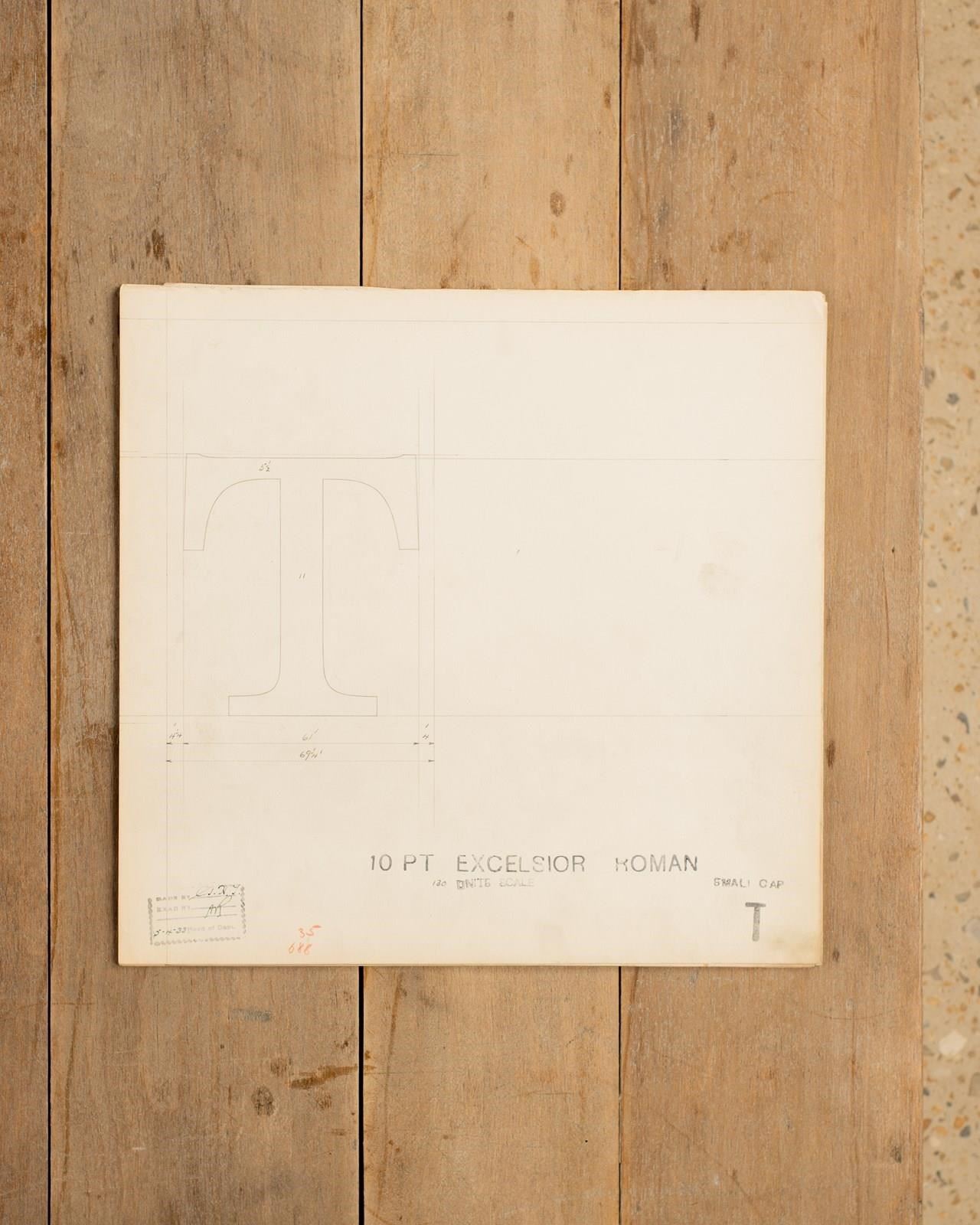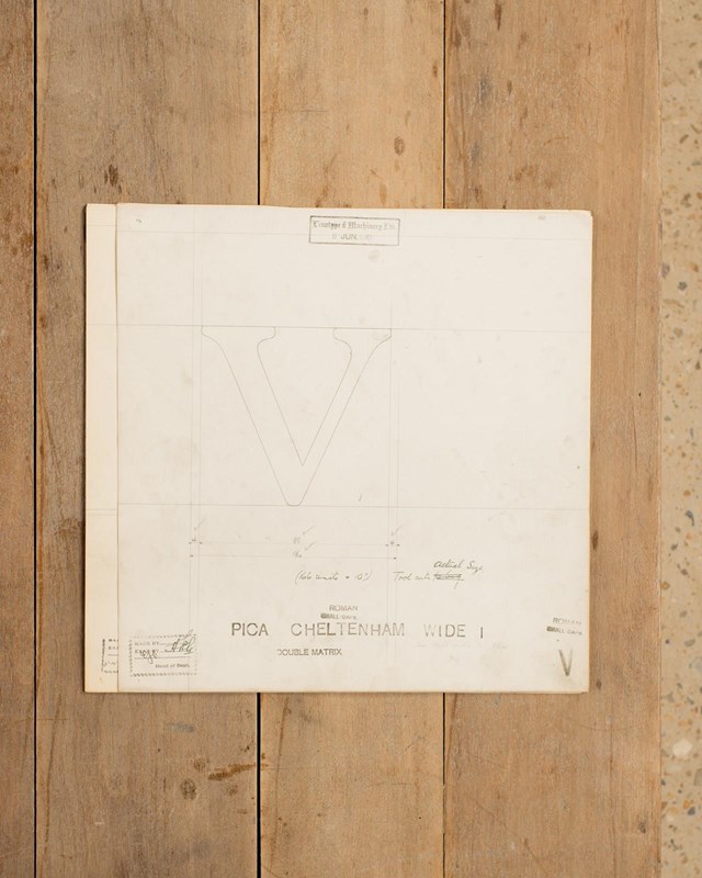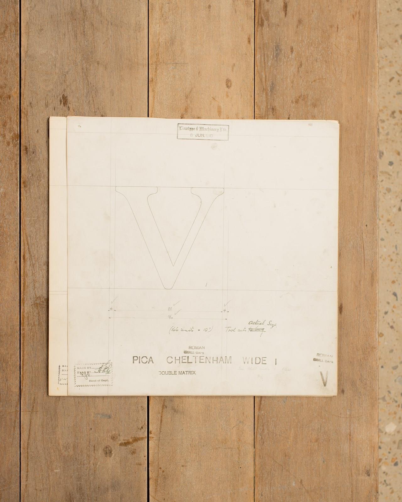A Collection of original hand rendered master drawings of letters and punctuations, individually dated and originally used as the matrices for making brass moulds at the Linotype Foundry in Manchester, Northern England.