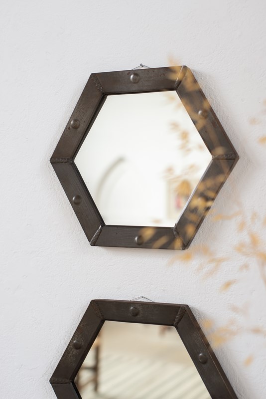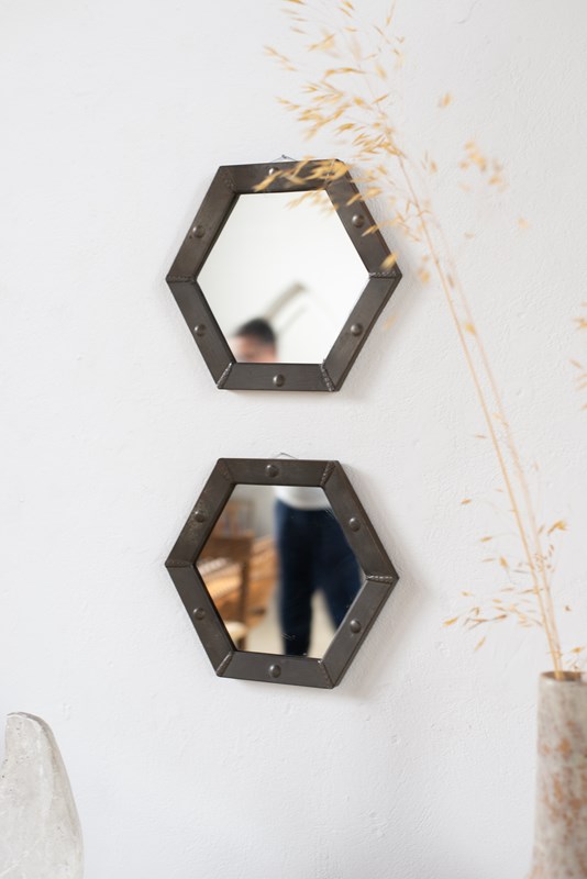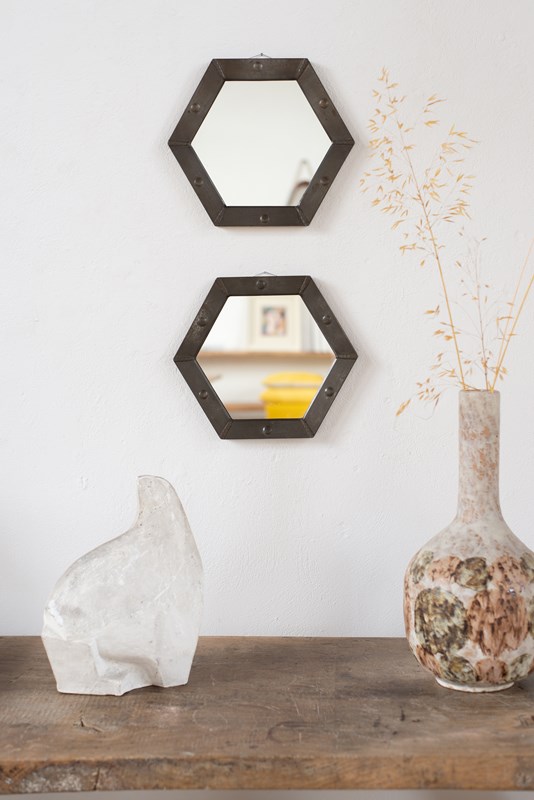 Pair Of Hexagonal Pewter Mirrors C1920