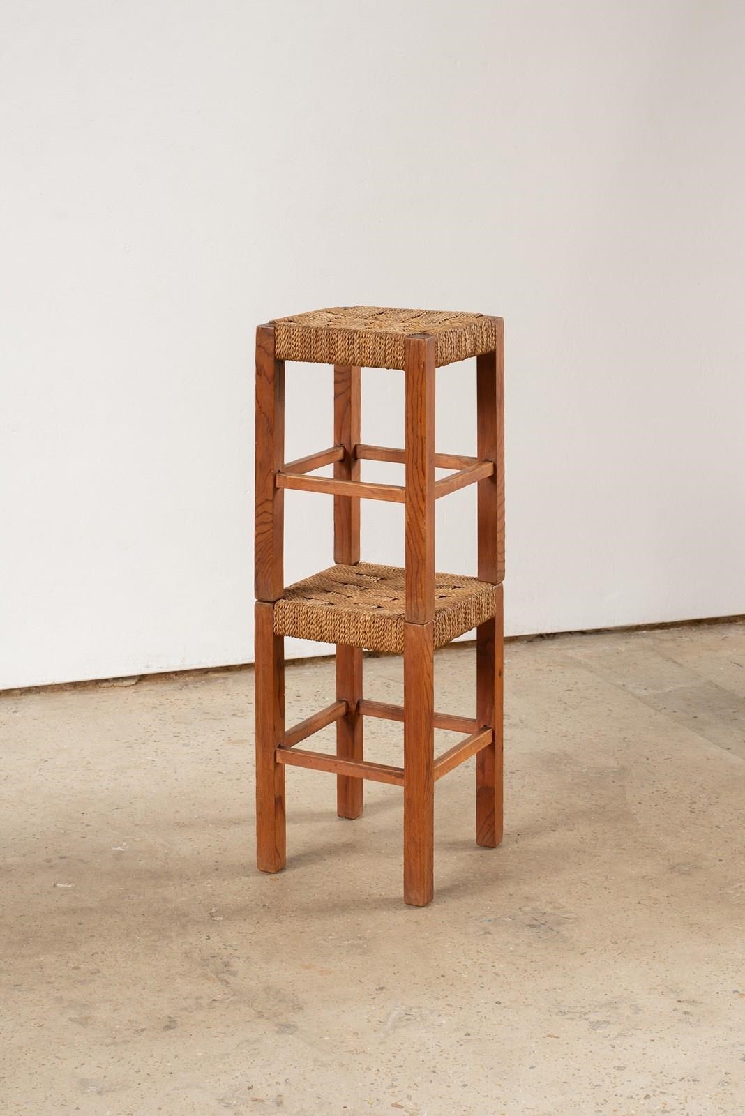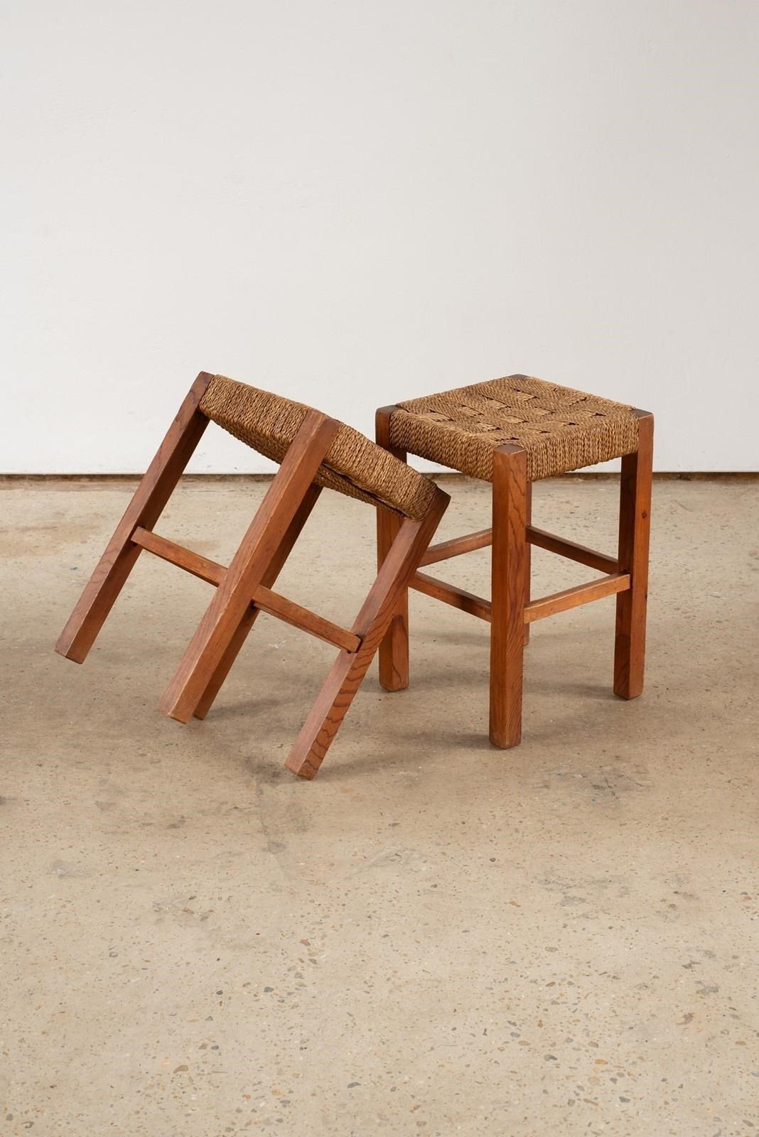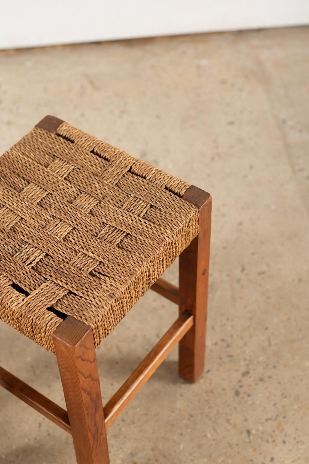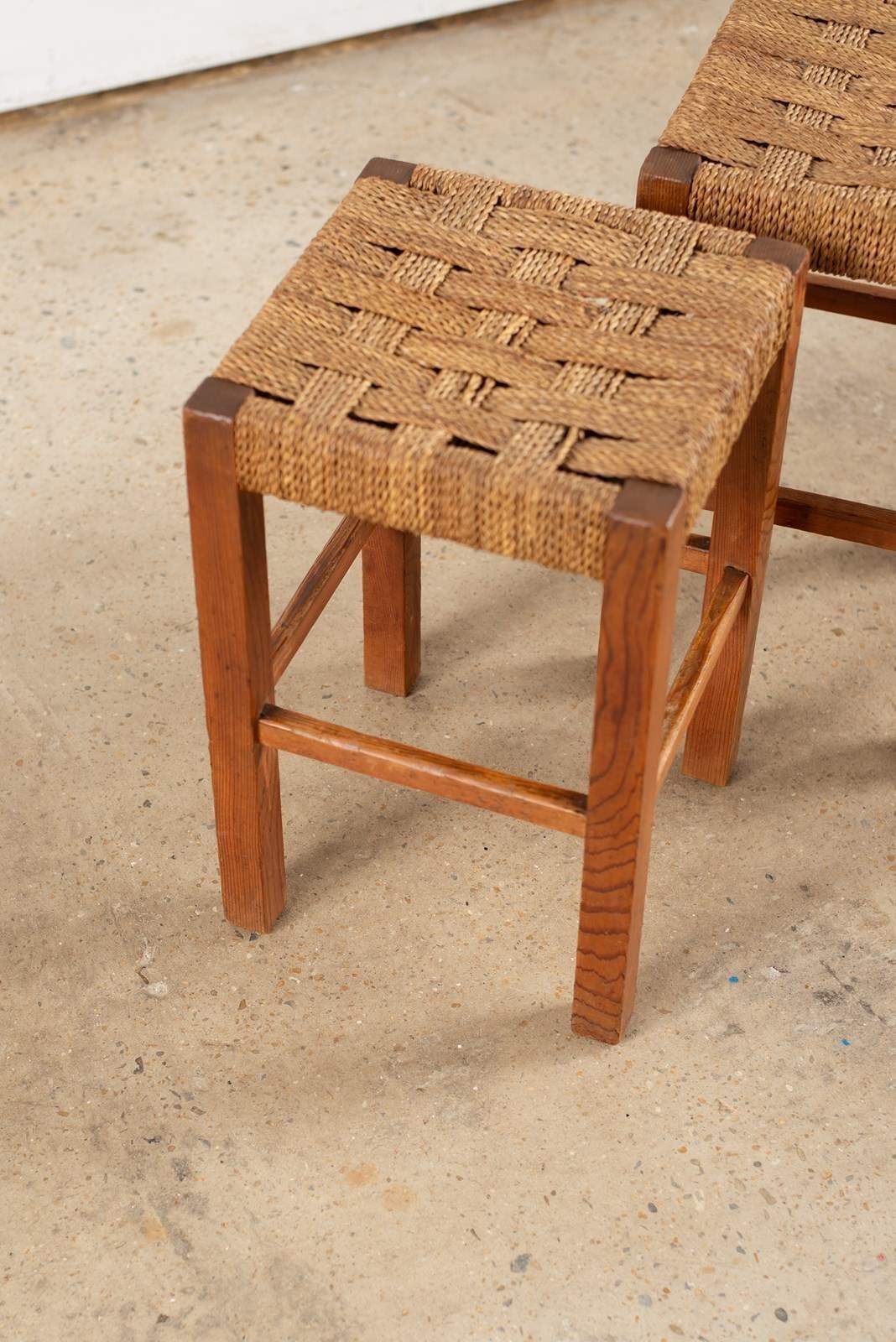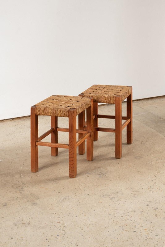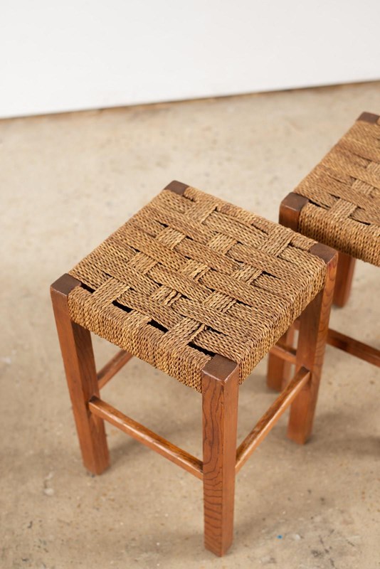 Pair Of Pine Stools With Woven Sisal Cord Seats, C1960