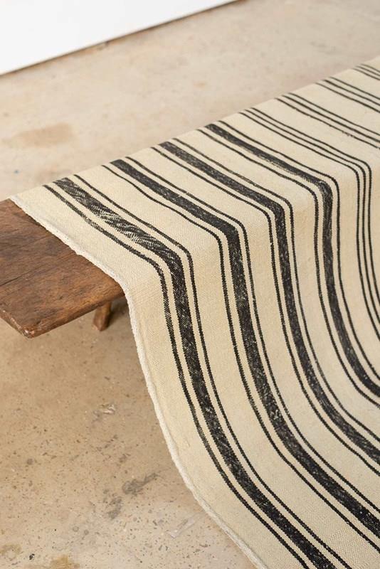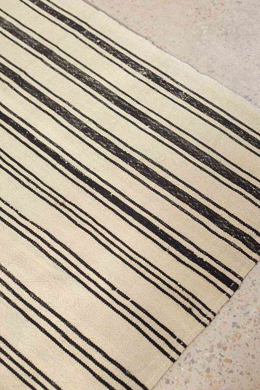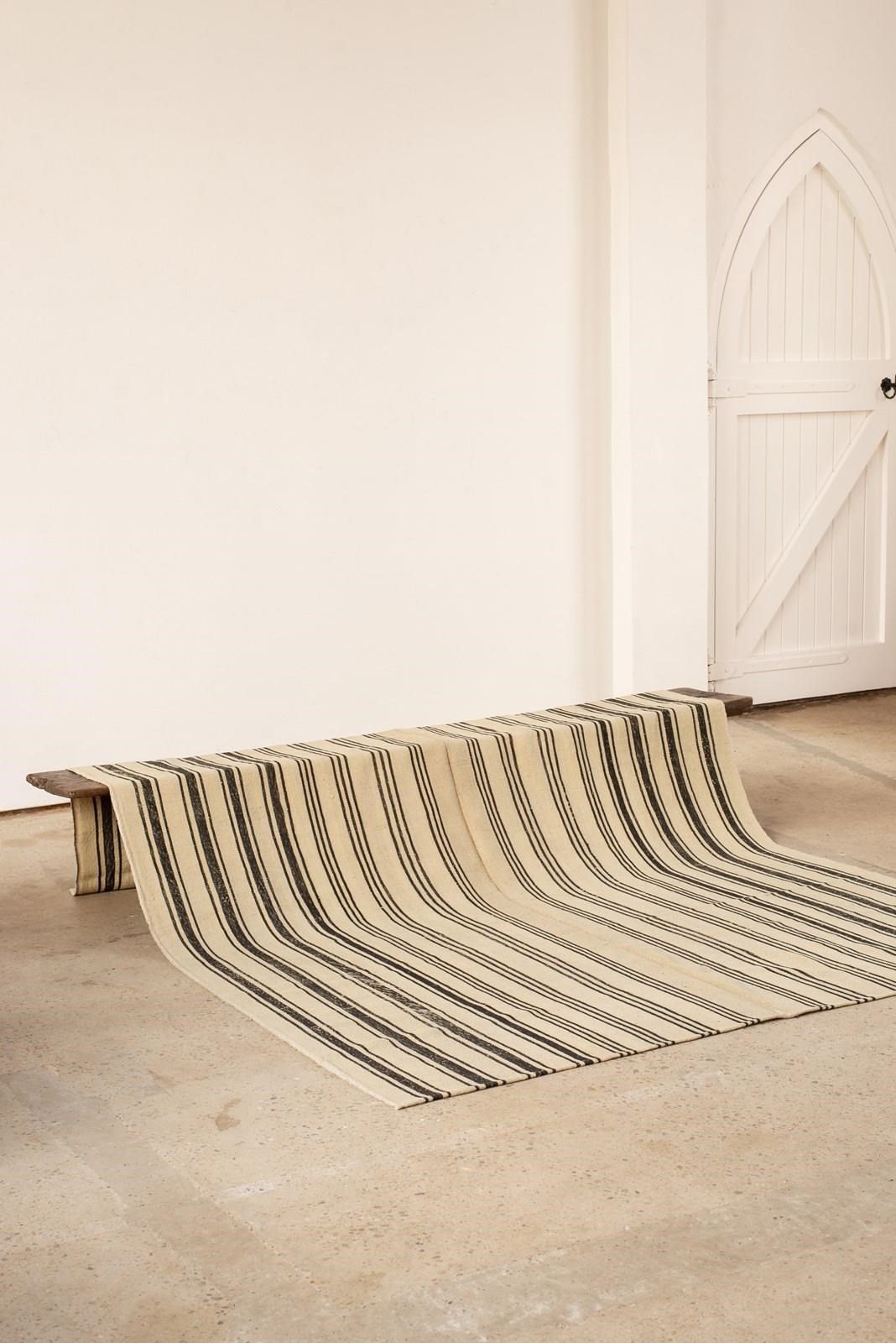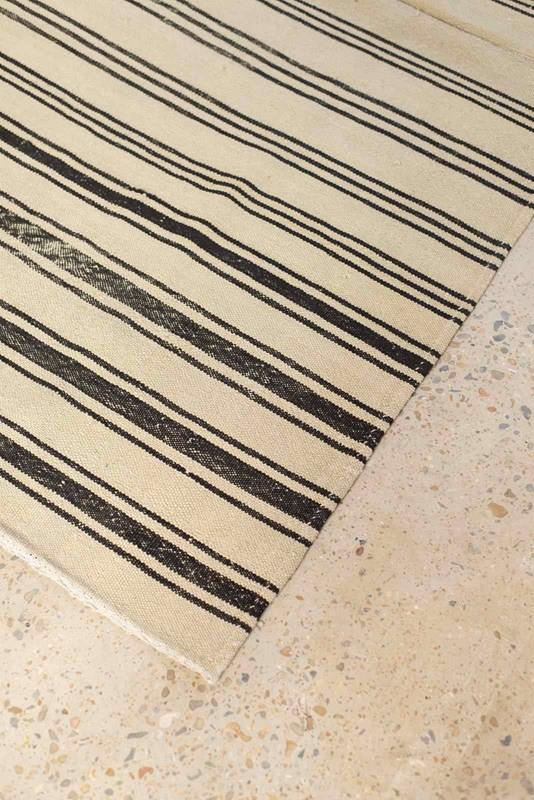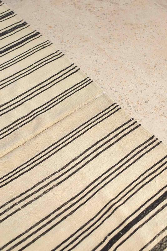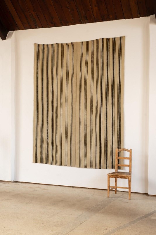 A large flat-weave Kilim from Turkey, in stripes of undyed wool, in tones of dark to mid chocolate and sand, C1960. In very good vintage condition.