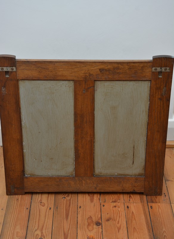 P0331 Very attractive antique Arts and Crafts country house umbrella stand on D shape outline, having panelled back, D shaped umbrella holder with two divisions raise on six uprights terminating in shaped base enclosing an original, removable drip tray. This antique umbrella stand has been cleaned and polished, it retains mellow colour, soft patina and antique character. No cracks, breaks, woodworm free. All in home ready condition. Can be fixed to the wall. c1900
