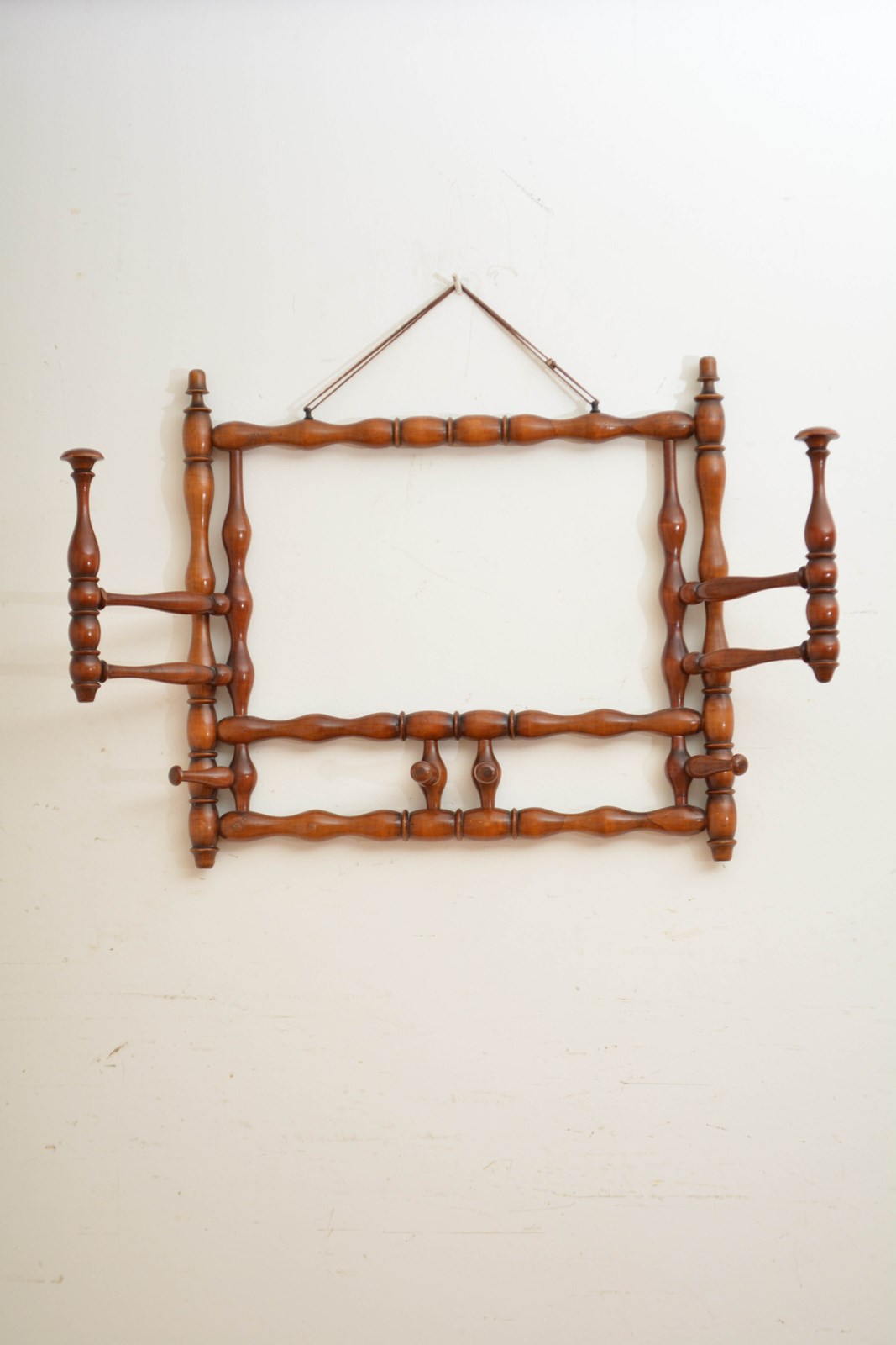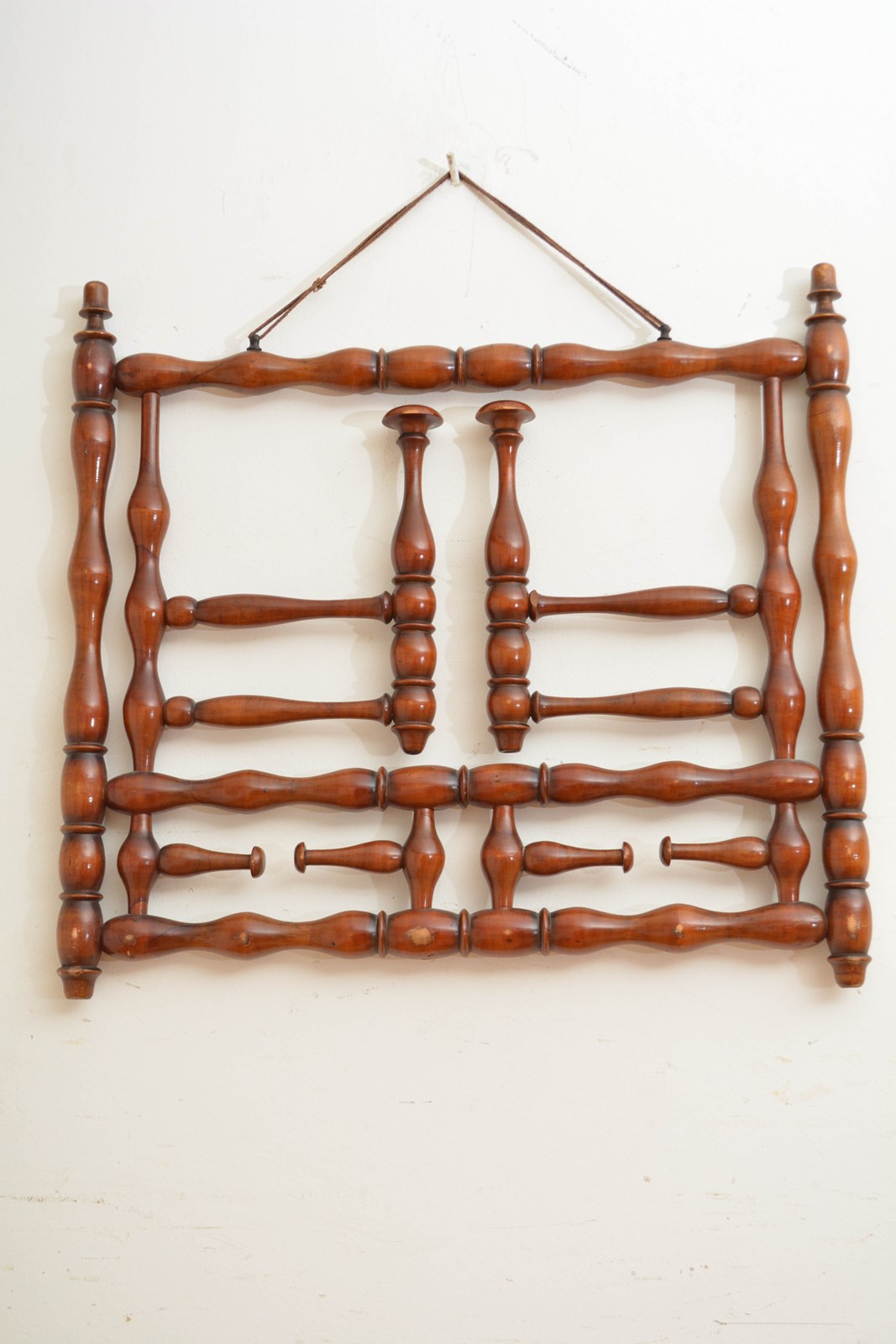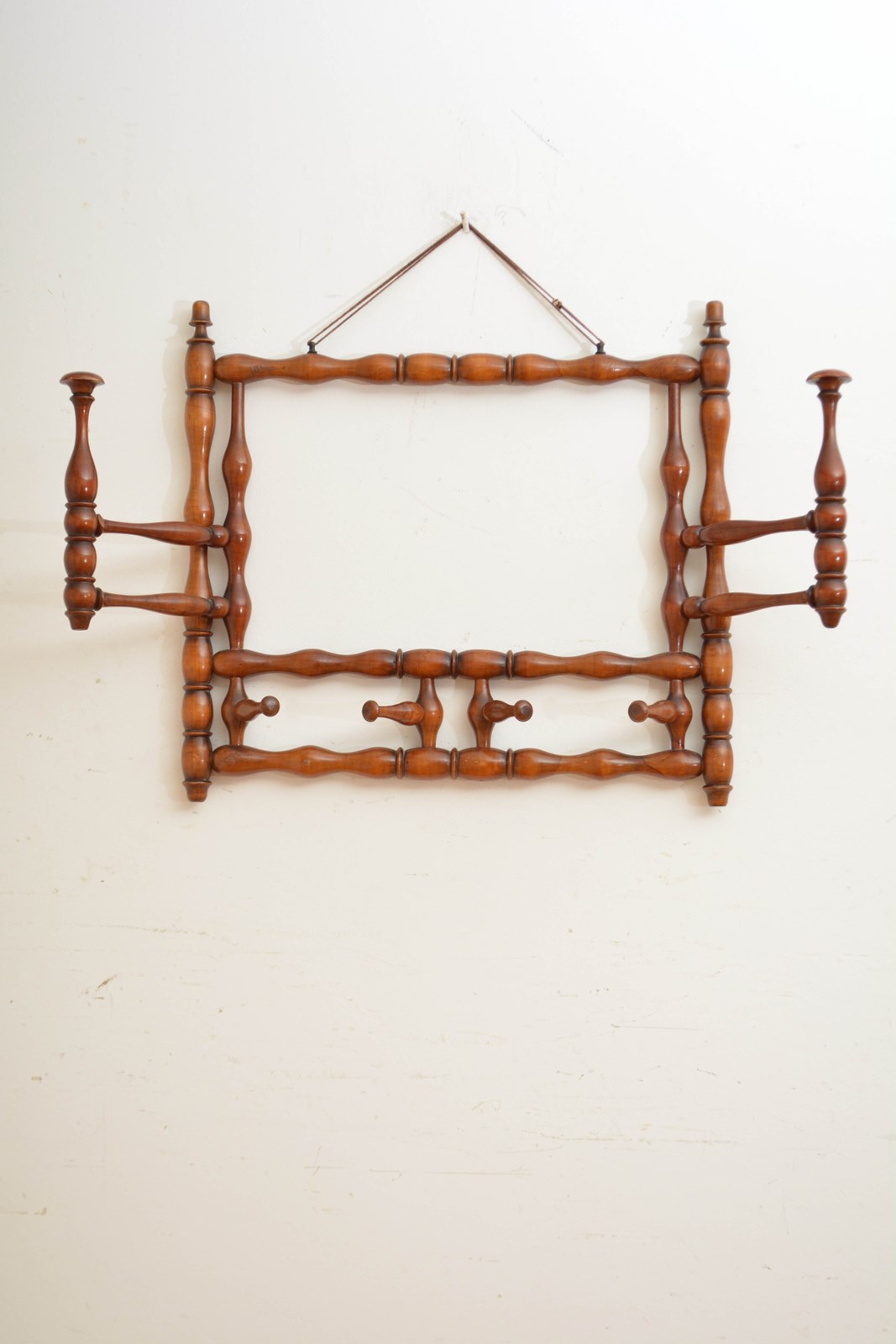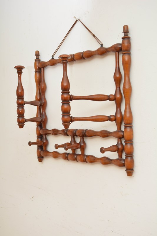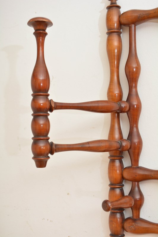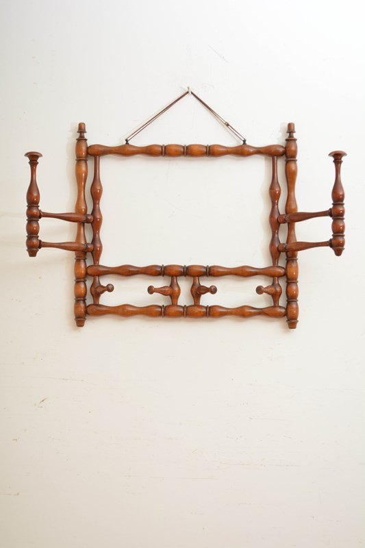 K0635 Stylish and unusual large French bobbin coat and hat rack, having two large and four small swivelling hat and coat hooks. All in home ready condition. No woodworm, sturdy, no breaks, cracks or old repairs. c1900