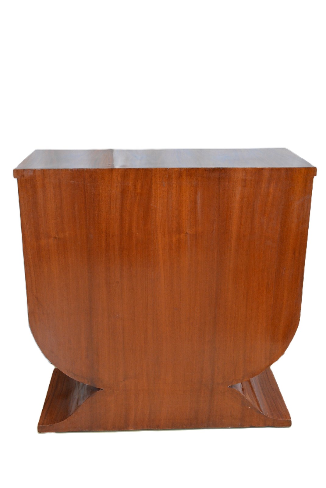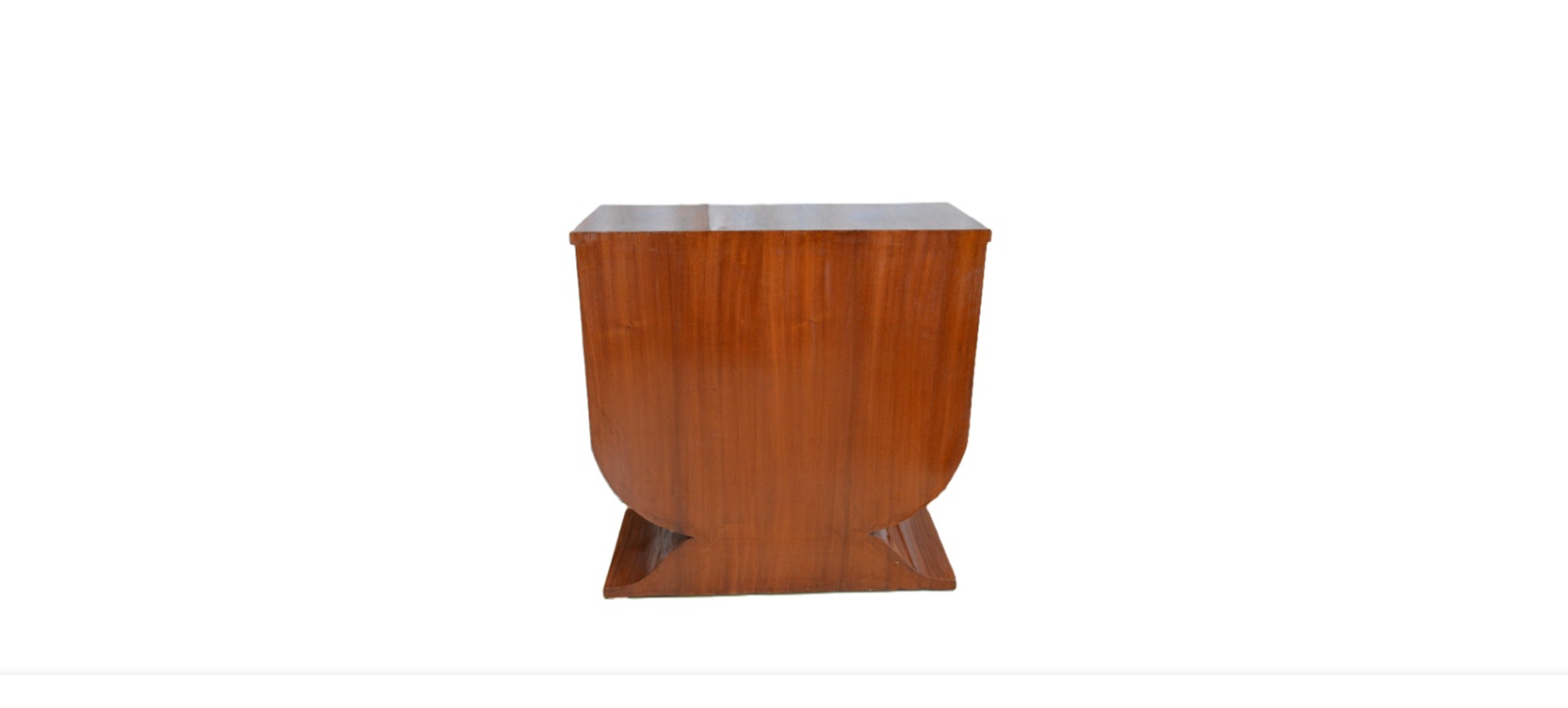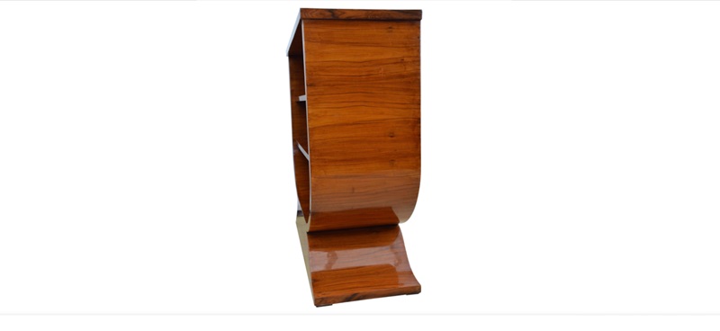 Outstanding pair of stylish and elegant tulip shaped Art Deco open bookcases in walnut, each having well figured oversailing top above two shelves, shaped figured walnut sides and figured base. This pair of antique bookcases came to us from a private collector in Glasgow. The pair is in home condition, showing a warm patina and light usage commensurate with age and its history, which enhances its authentic antique charm. All solid, sturdy, no cracks, breaks or splits, no woodworm. c1930