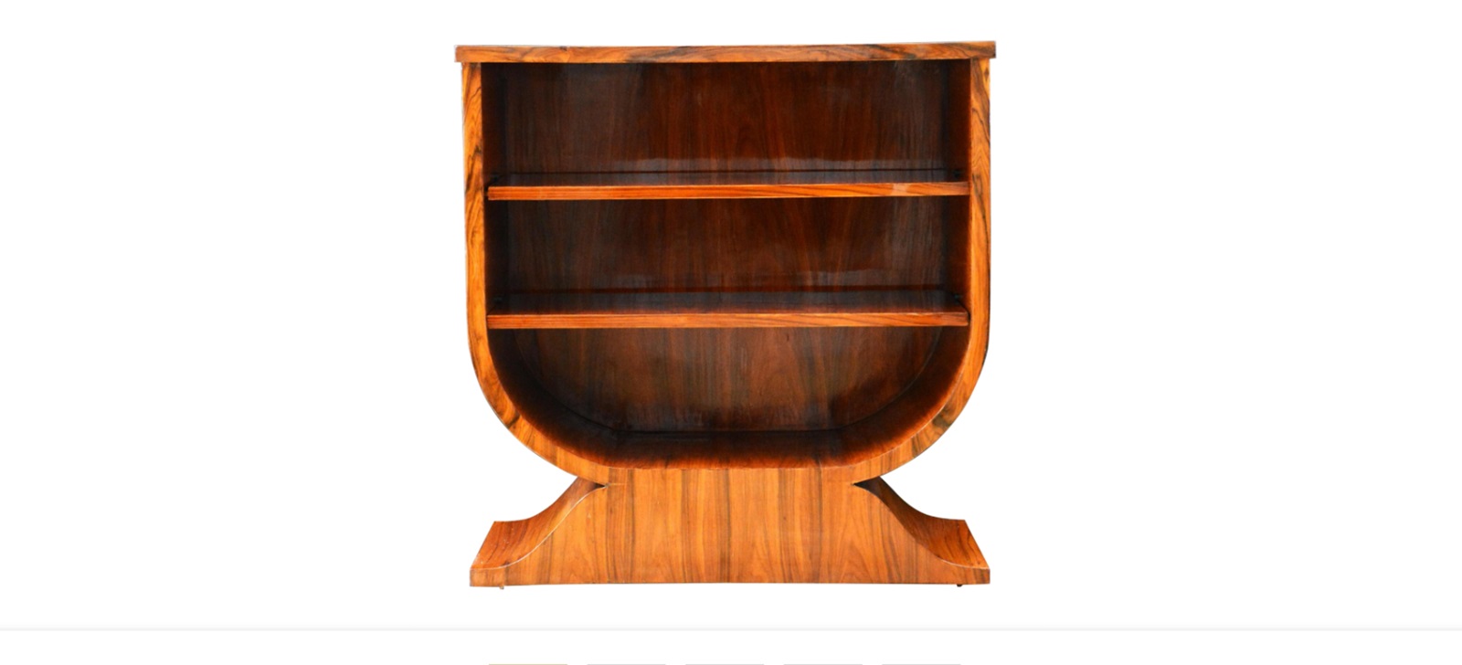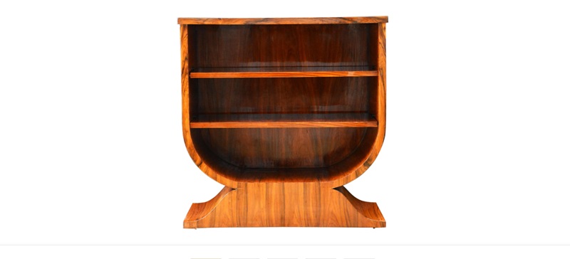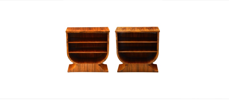 Rare Pair Of Art Deco Walnut Open Bookcases, C1930s