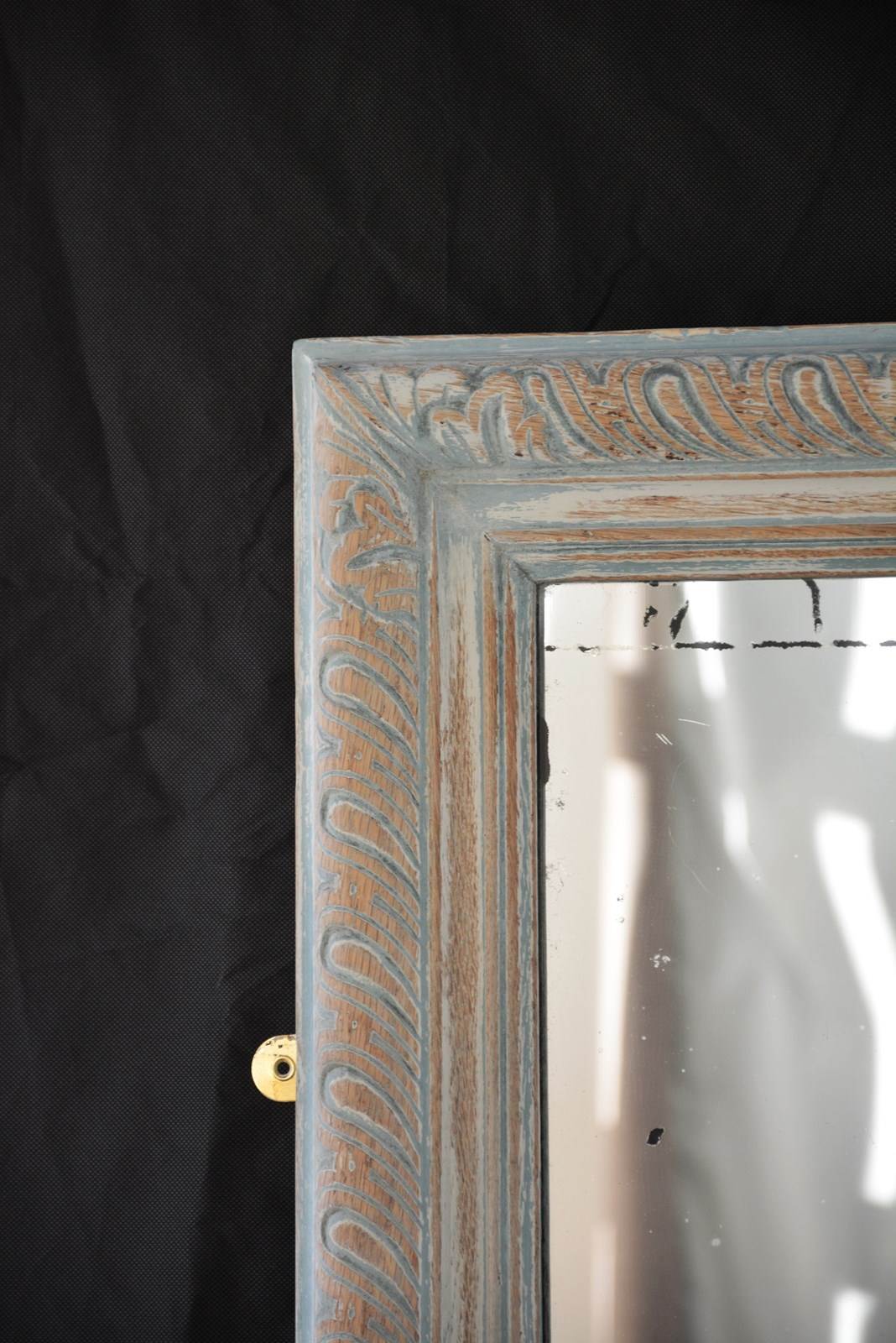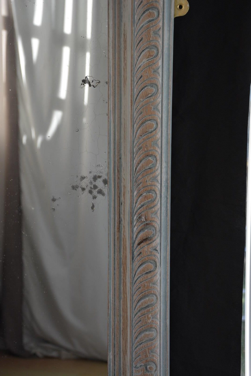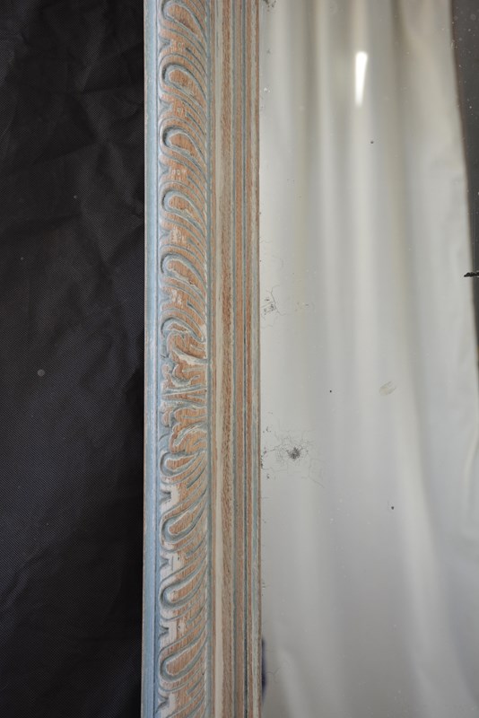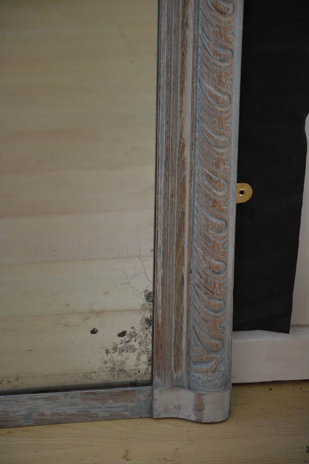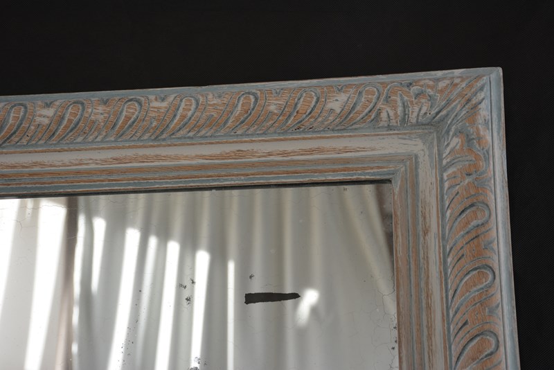 This antique mirror is carved in solid oak and is showing years of worn out paint which adds to its fabulous antique character. The the mirror has four wall fixing brackets, all in home ready condition. The mirror is solid and sturdy, woodworm free, no loses or missing elements. c1860
