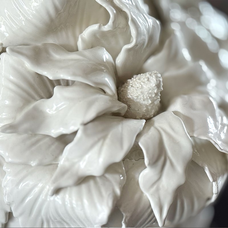 A very large and profusely decorated white ceramic table light from Manises in Spain.