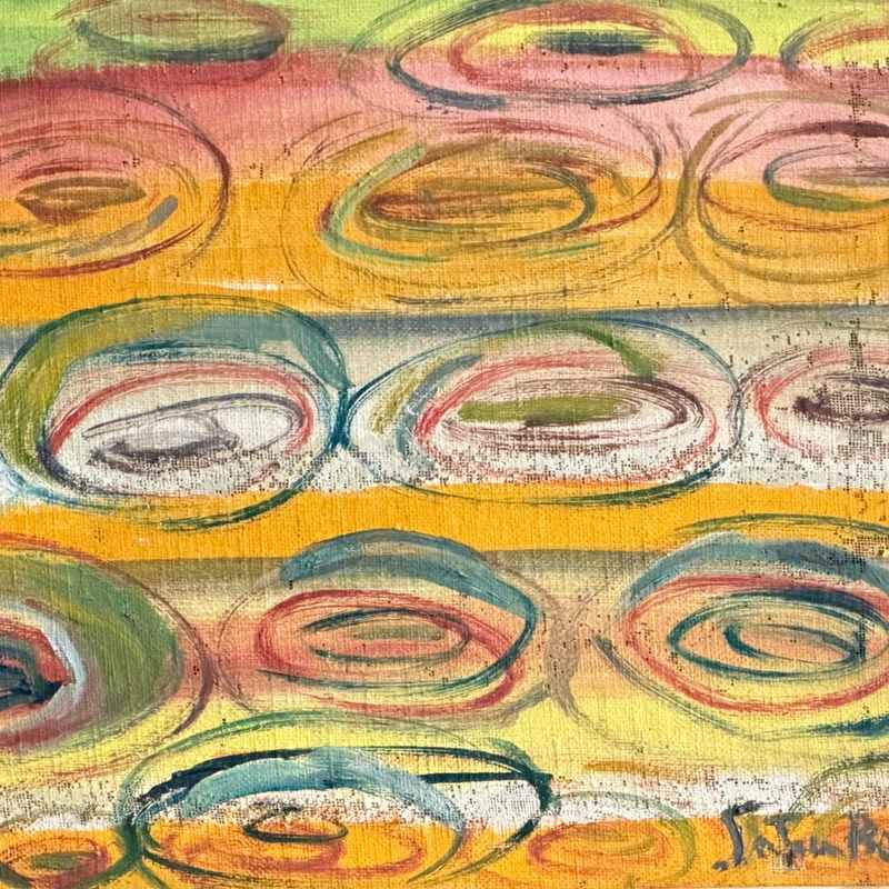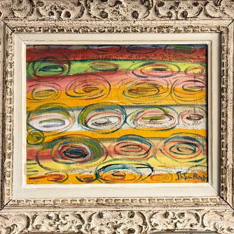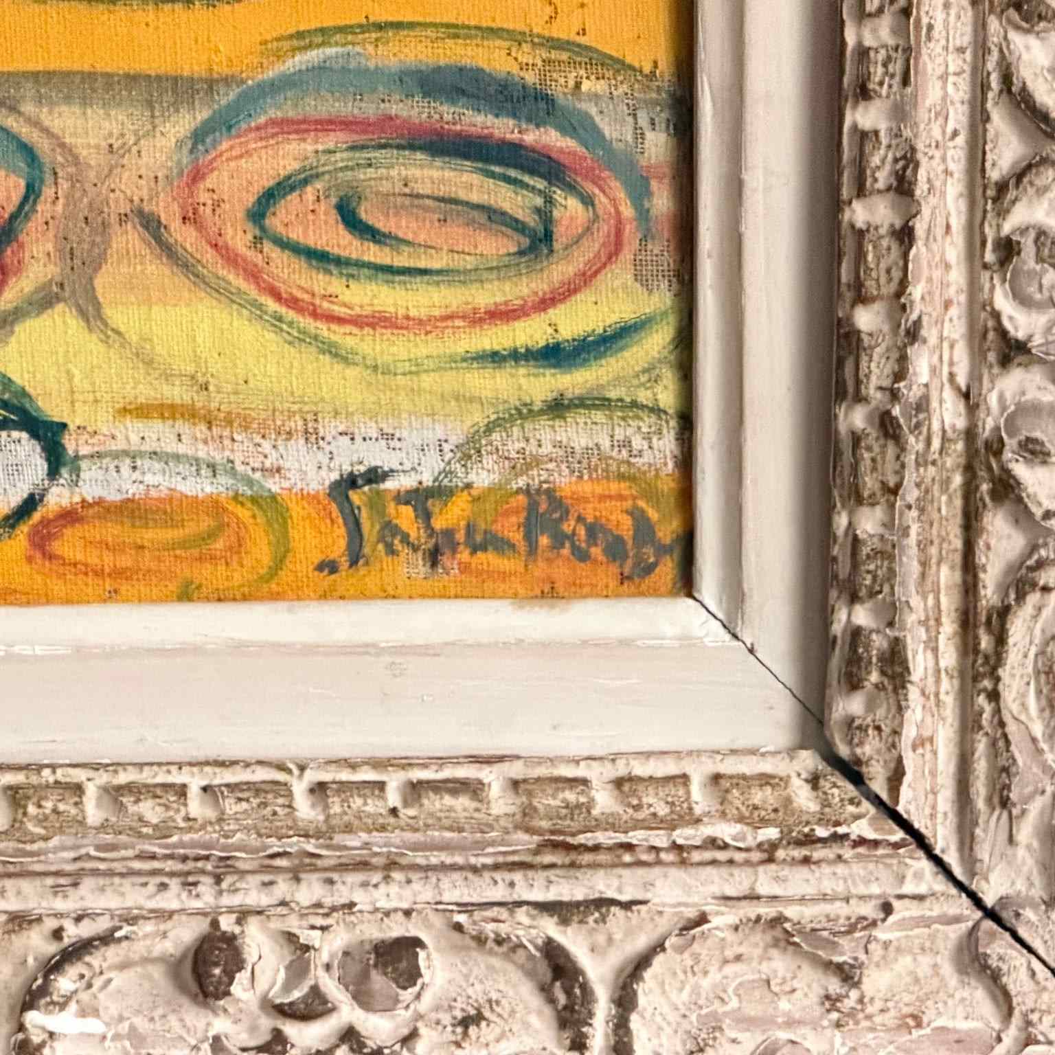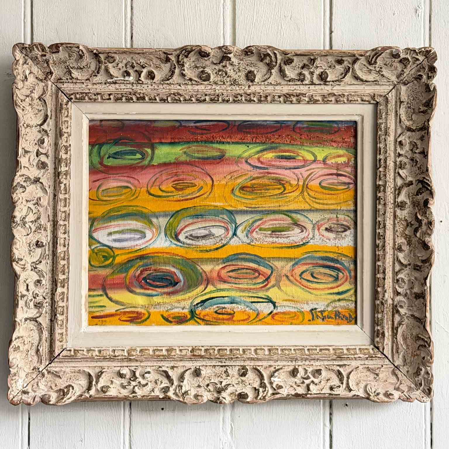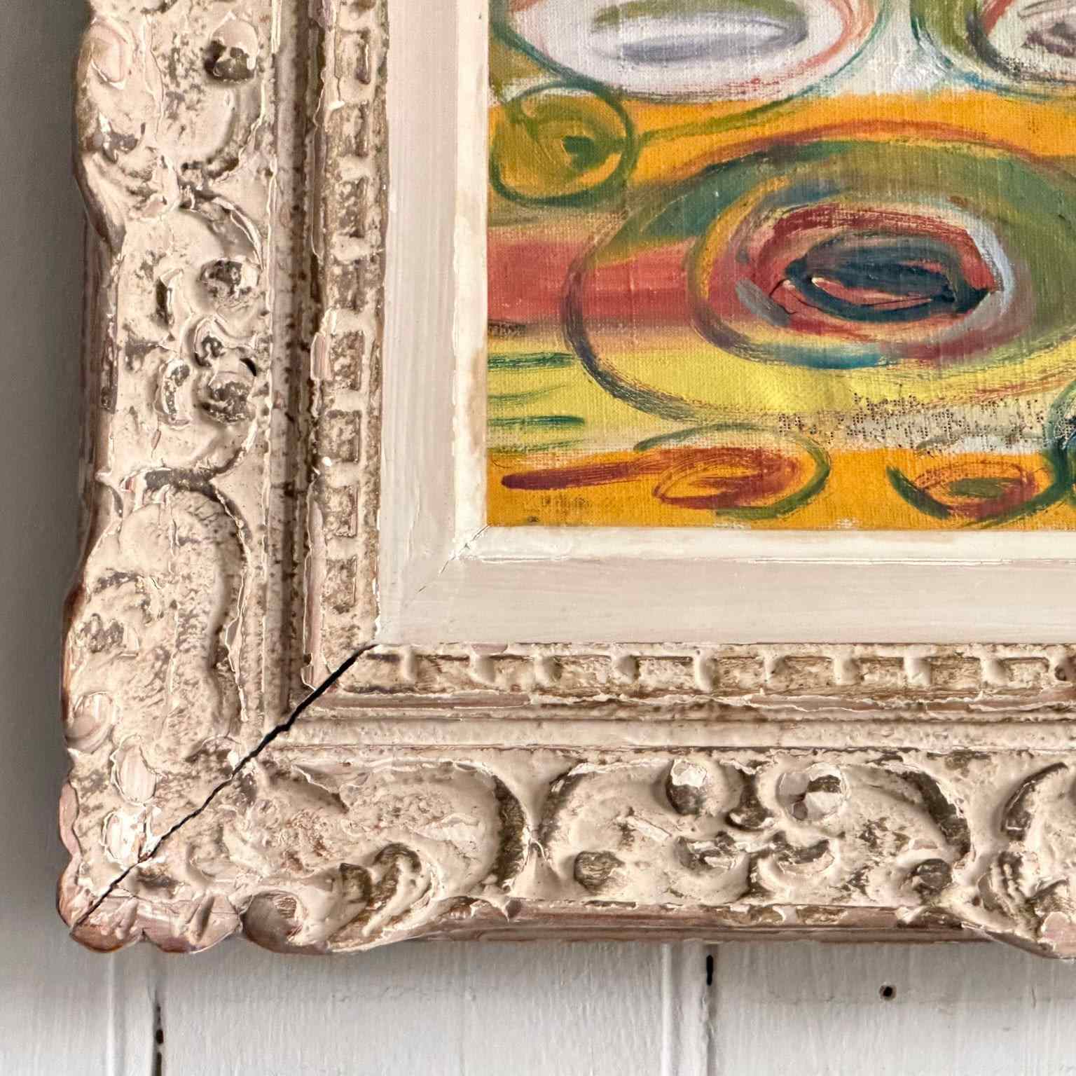 An expressive and vibrant abstract artwork set within a vintage Montparnasse frame. Signed bottom right.