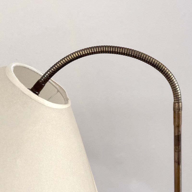 A 1950'S French Adjustable Brass Reading Lamp With Parchment Shade