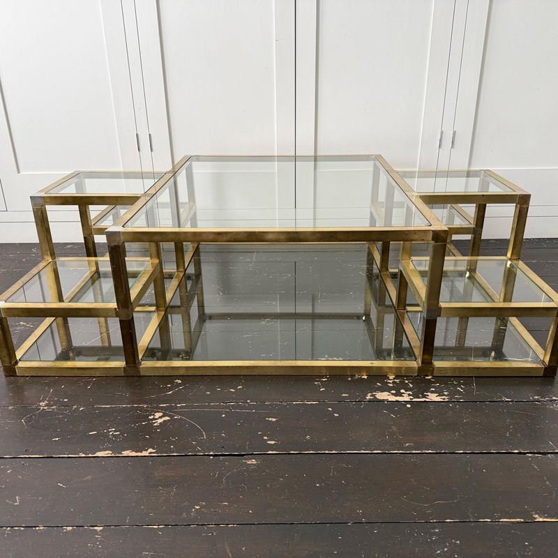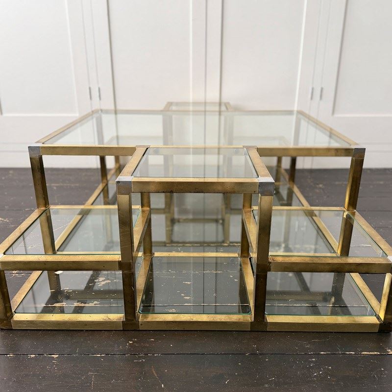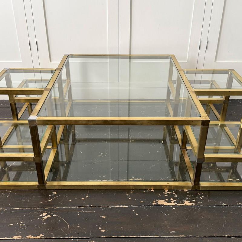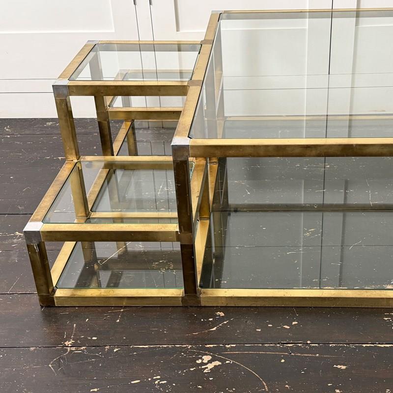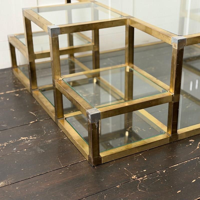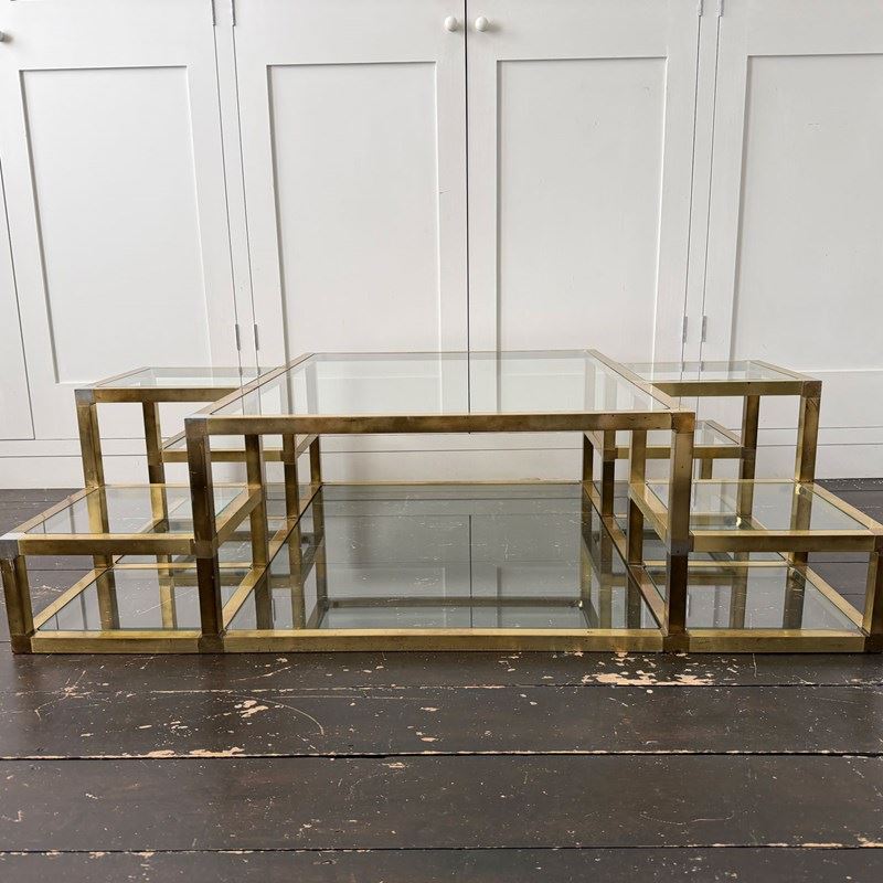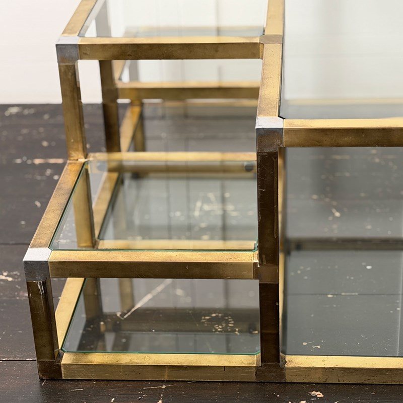 A 1970'S Italian Multi-Tiered Brass & Glass Coffee Table