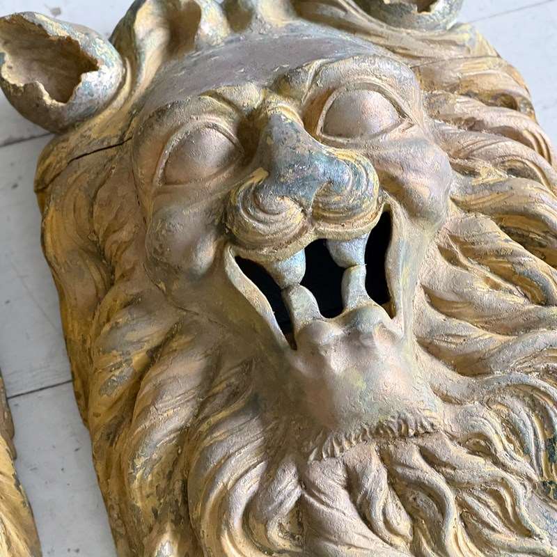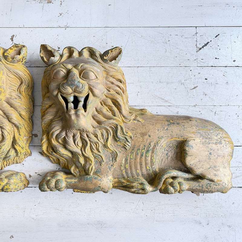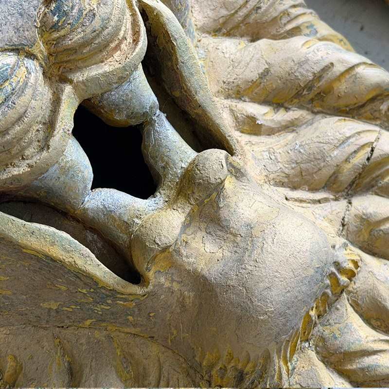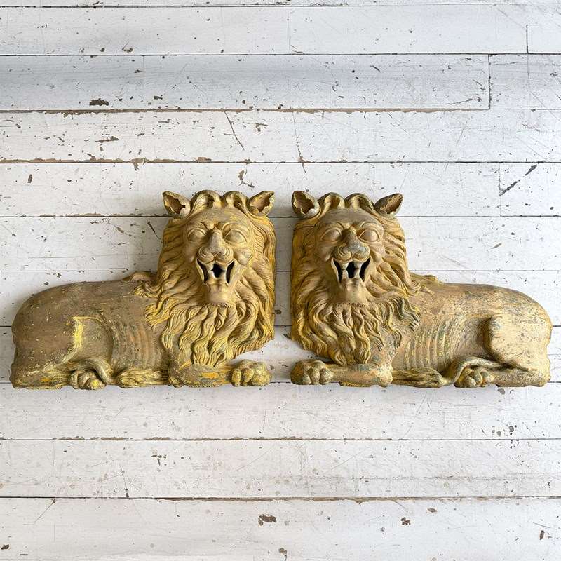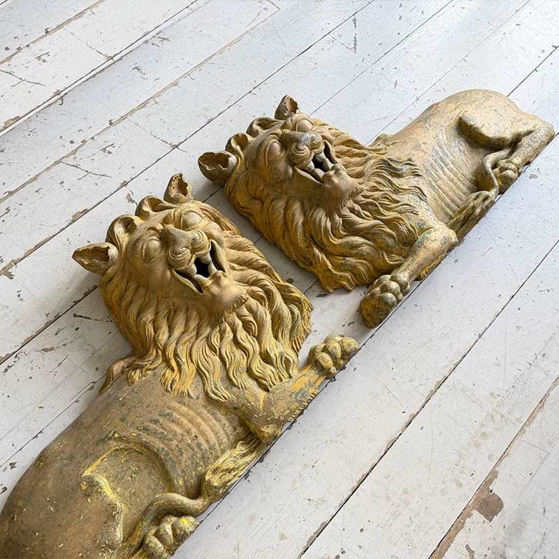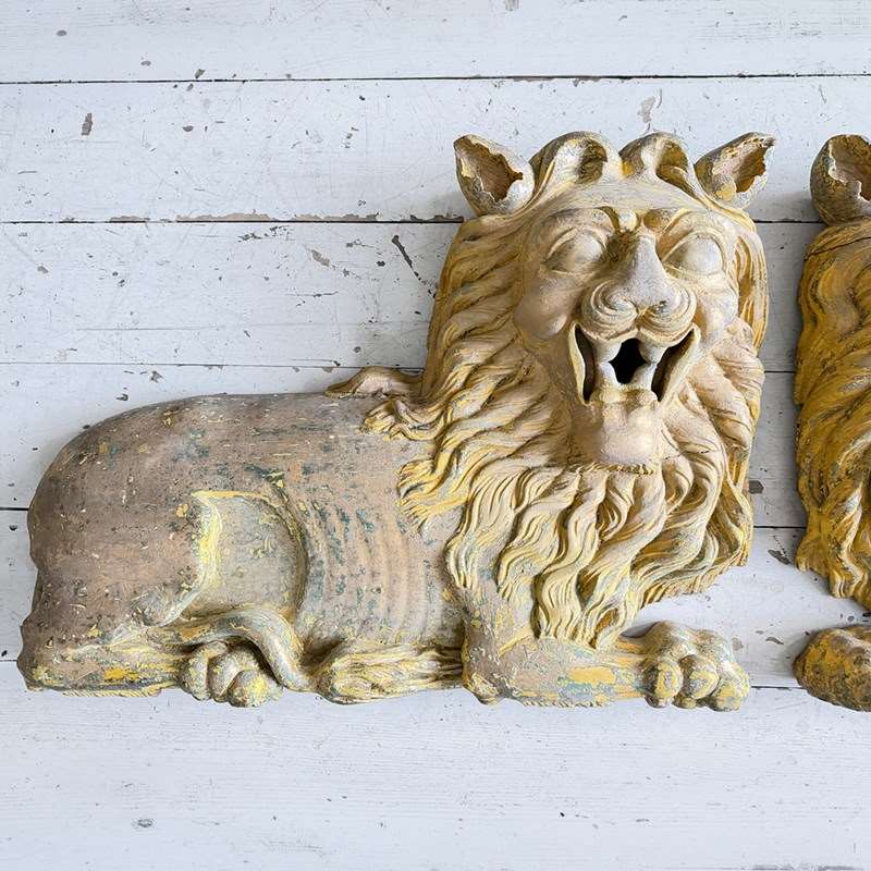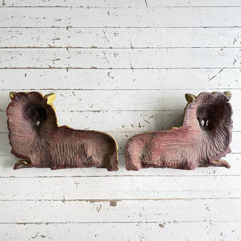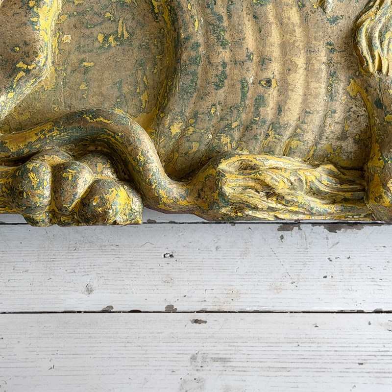 A Large Pair Of 18Th C Hand Carved Chinese Foo Dog Wall Sculptures