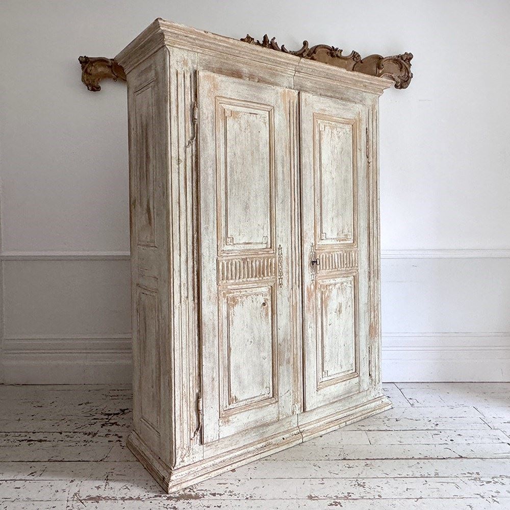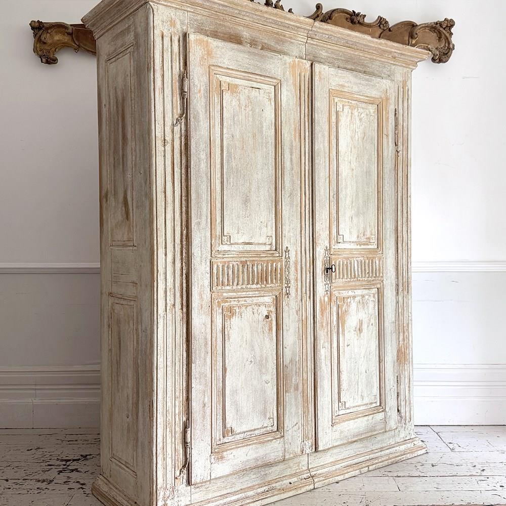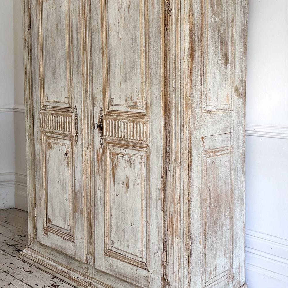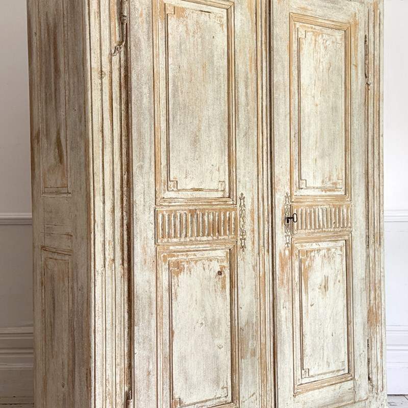 A Late 18Th C Painted French Armoire With Reeded Decoration