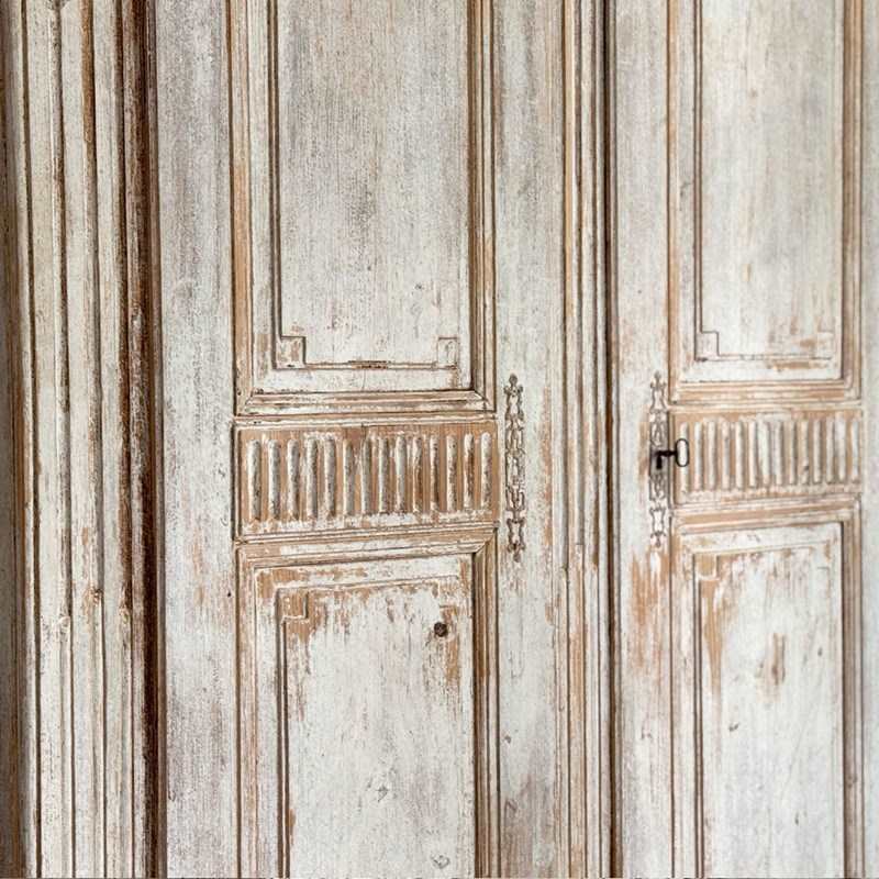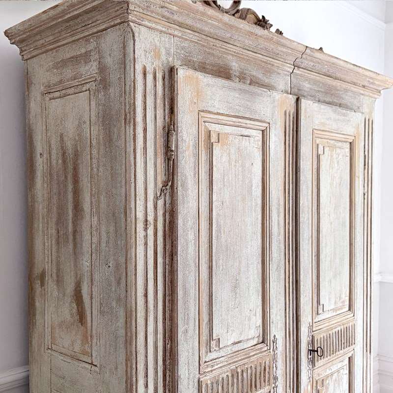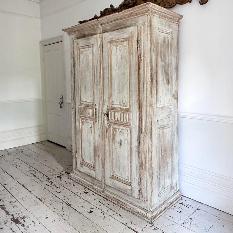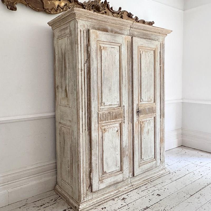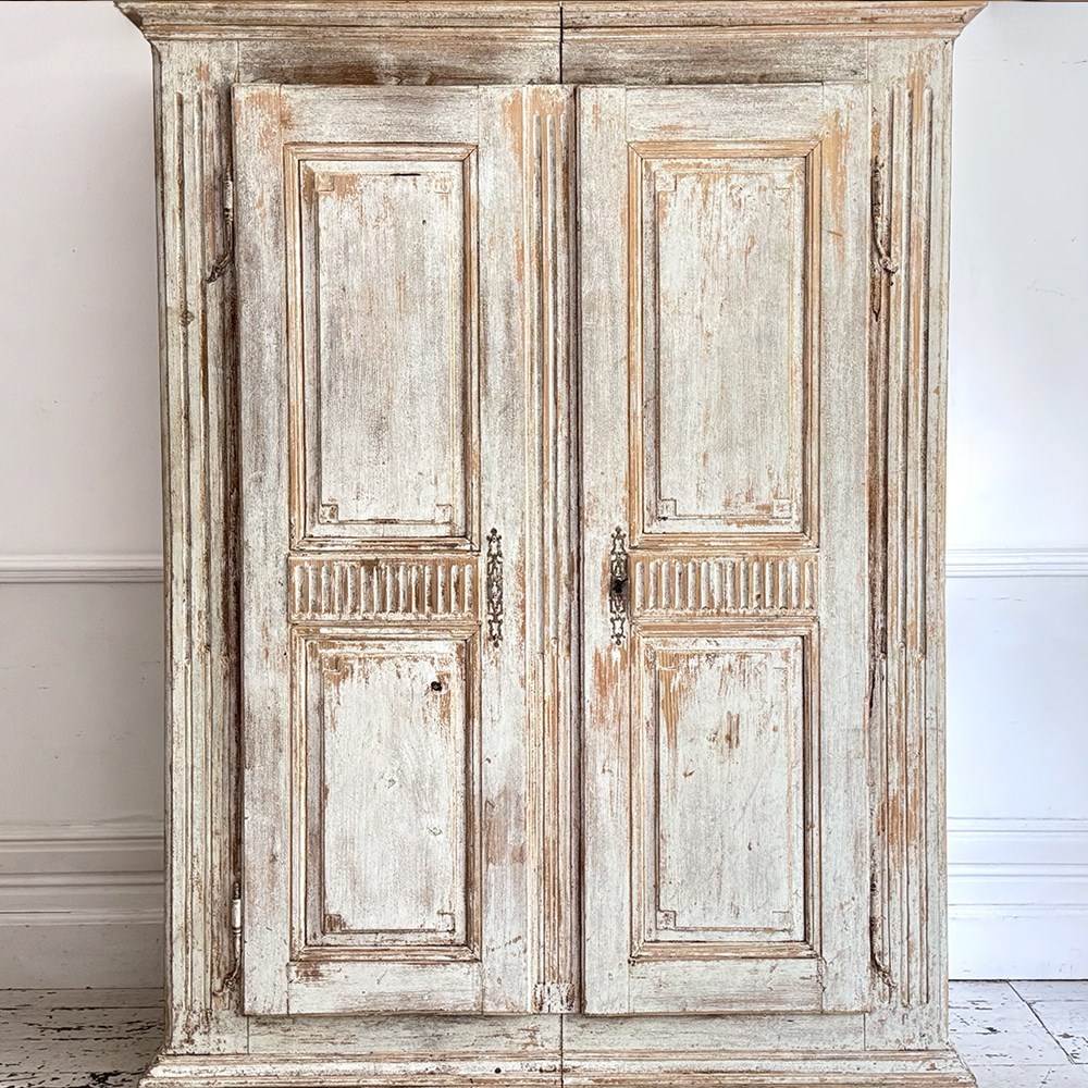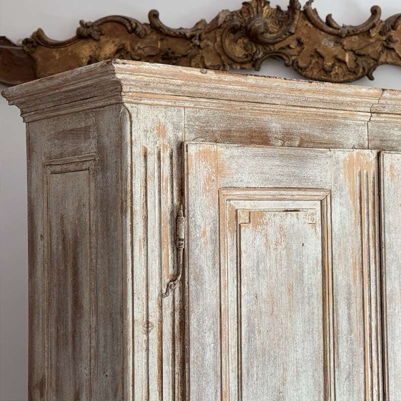 A Late 18Th C Painted French Armoire With Reeded Decoration