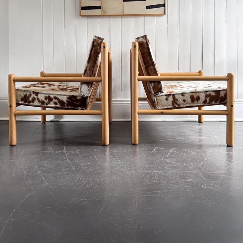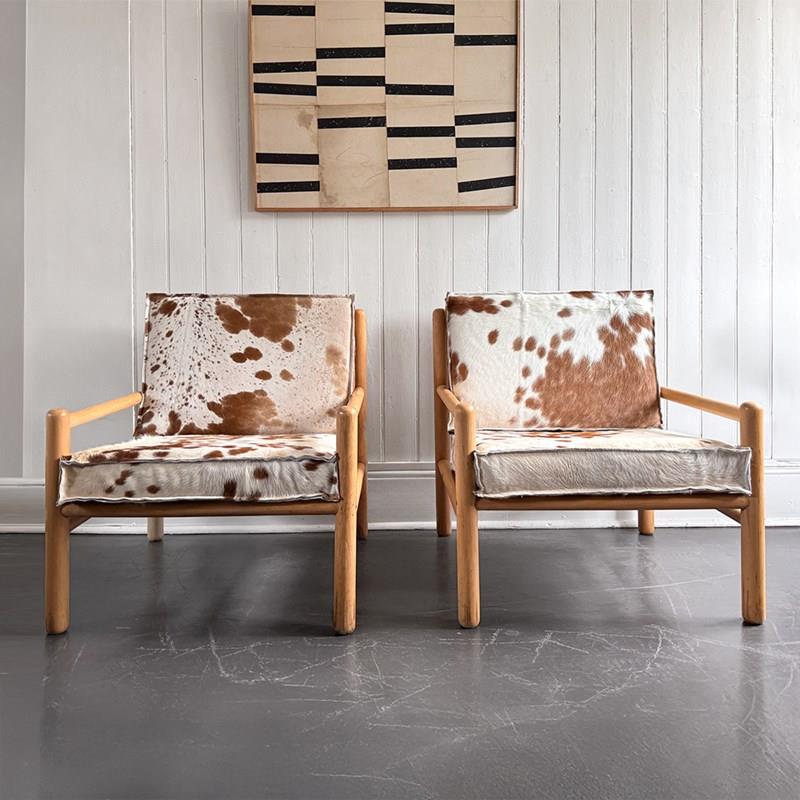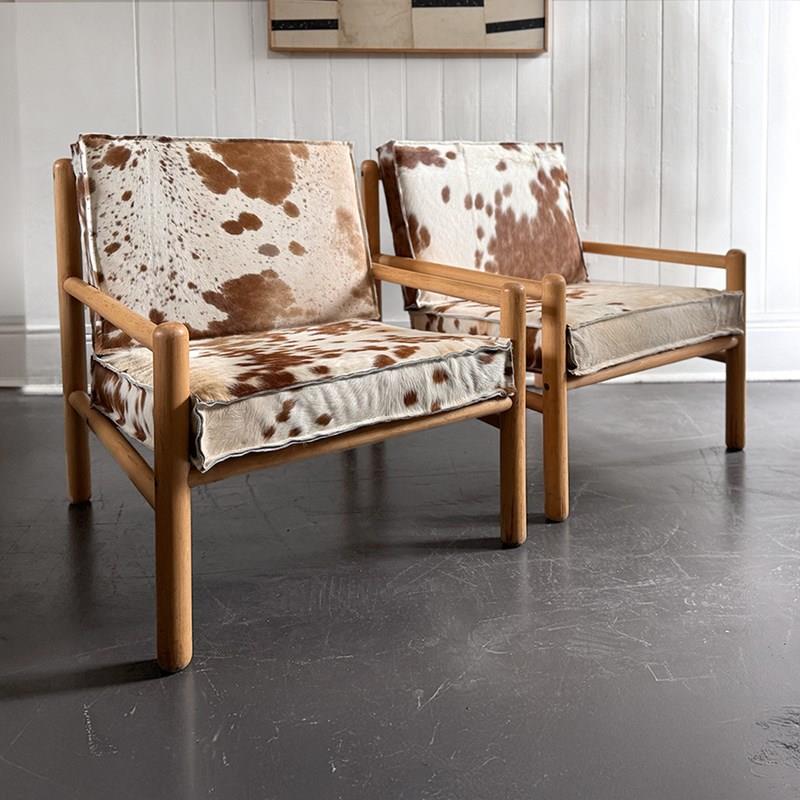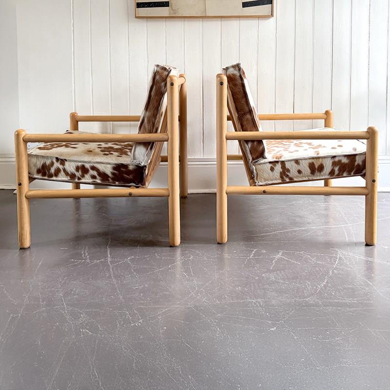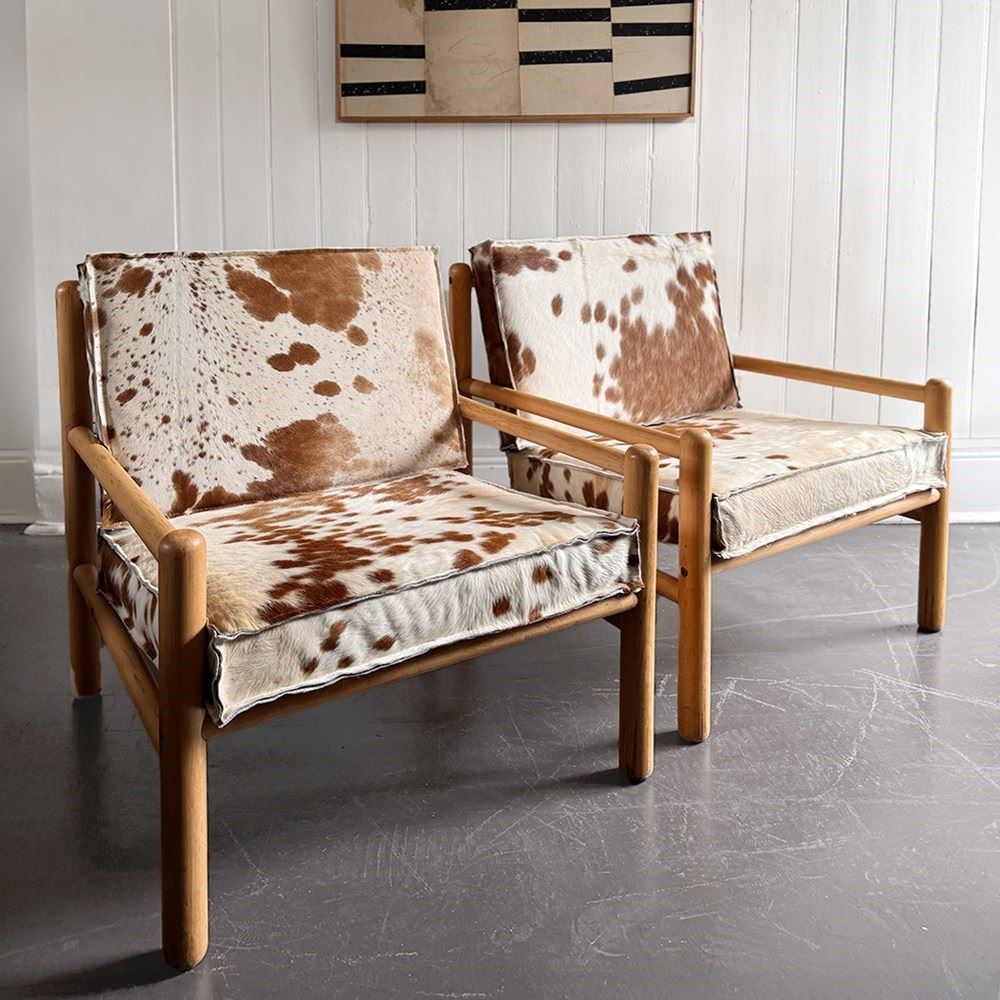 A Pair Of 1970'S Italian Lounge Armchairs With Cowhide Upholstery