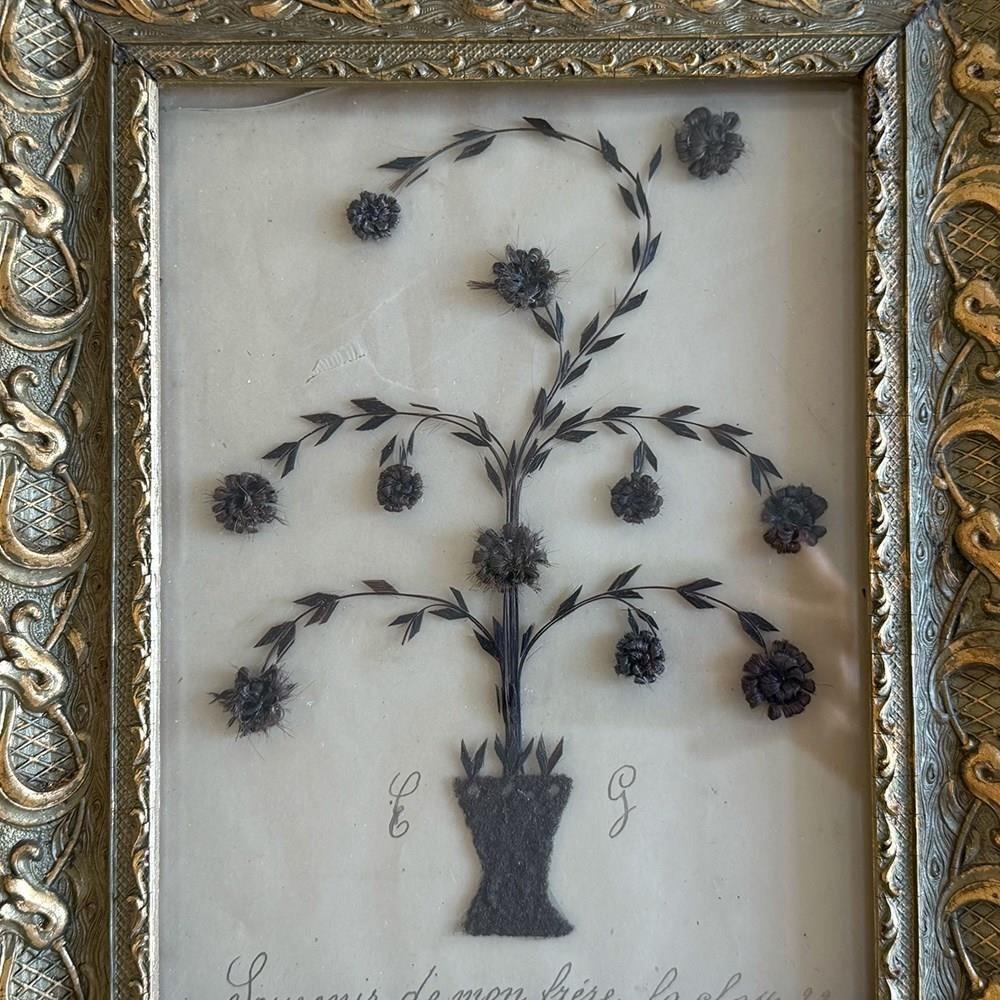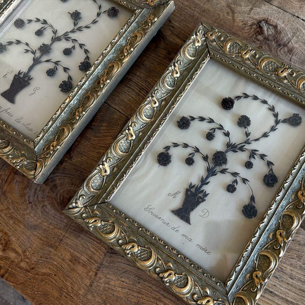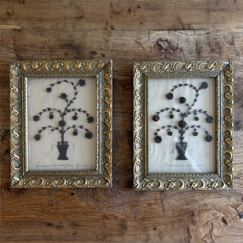 A Pair Of 19Th C French Framed Decorative Horse Hair Floral Souvenirs