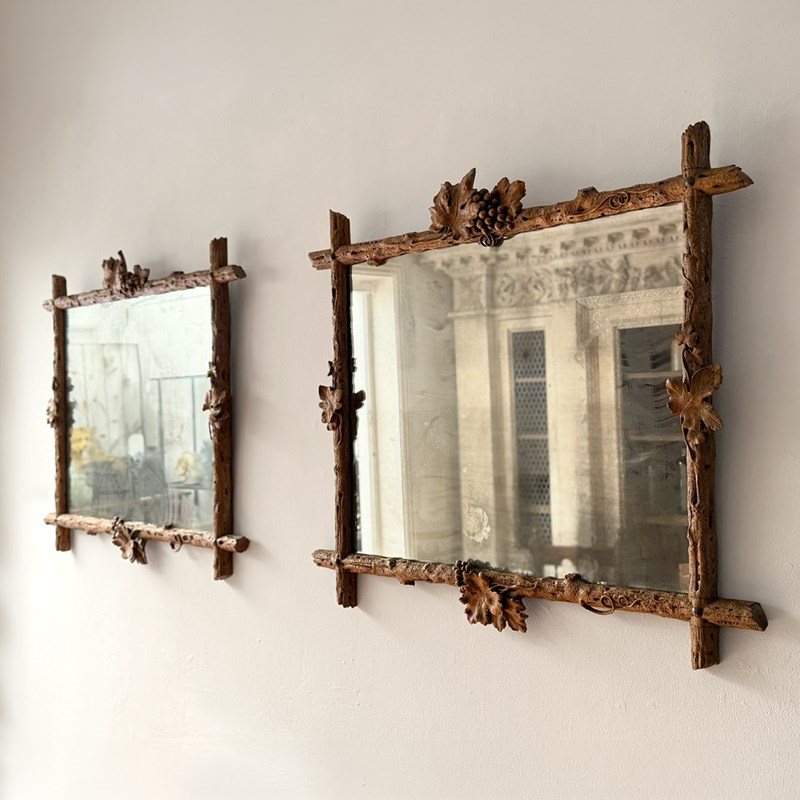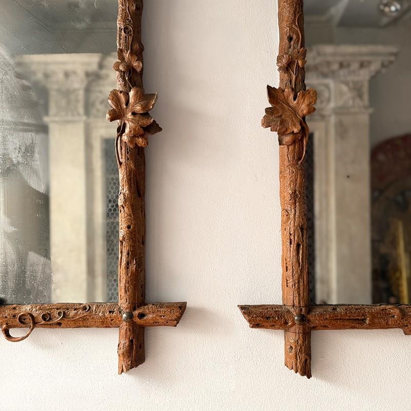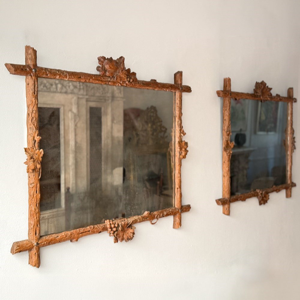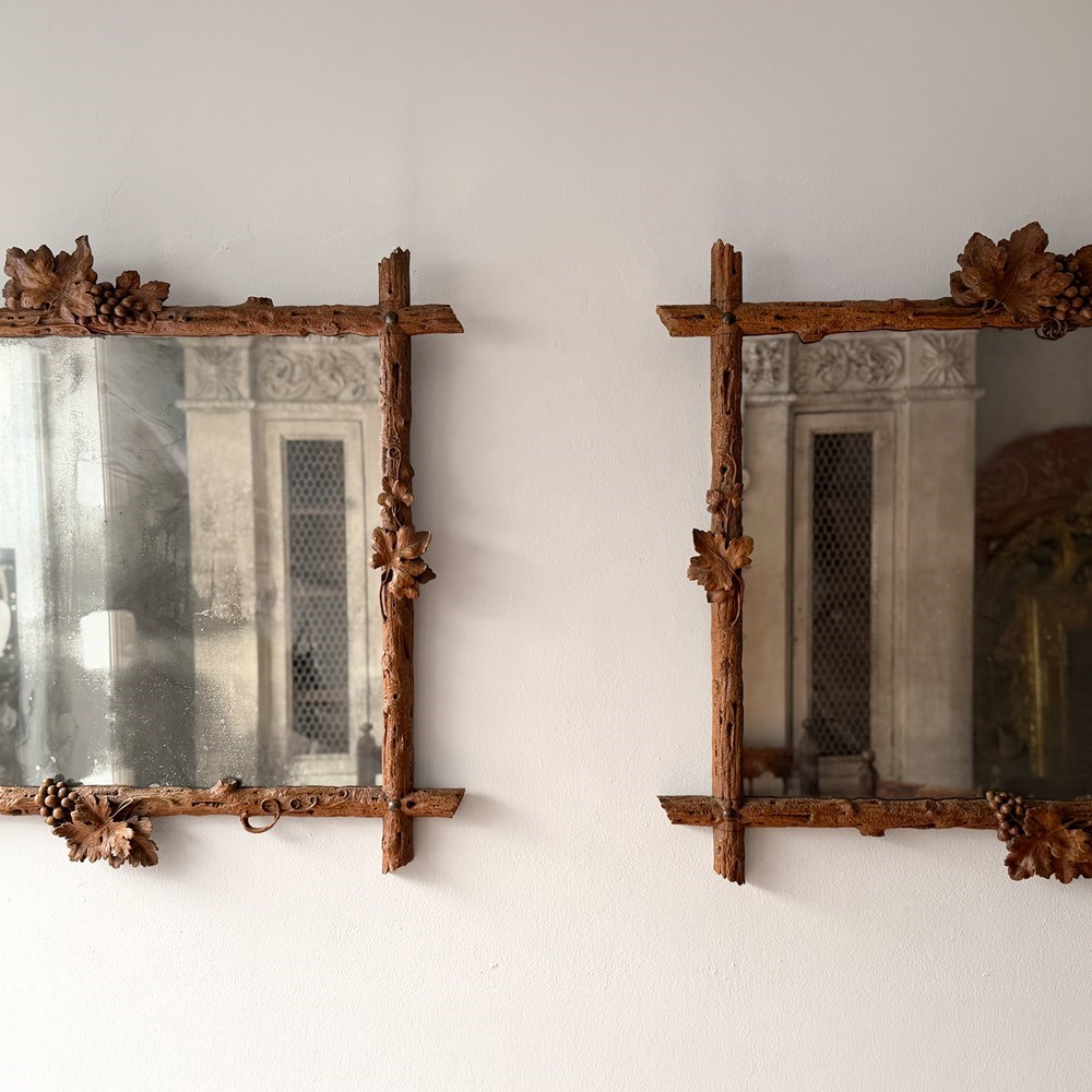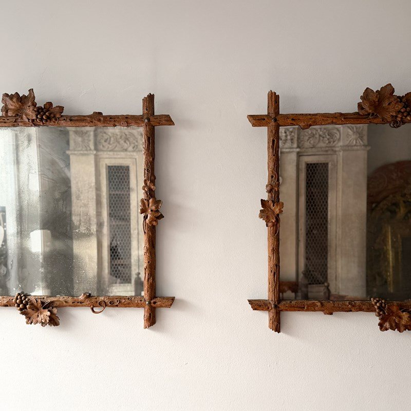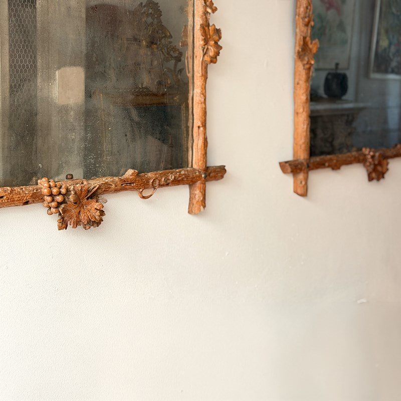 A Pair Of 19Th C Italian Folk Art Carved Vine Mirrors