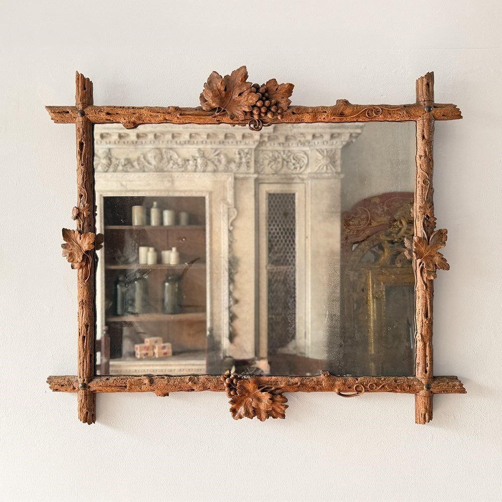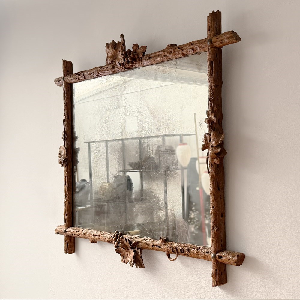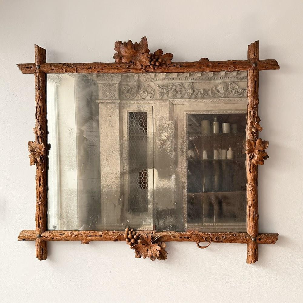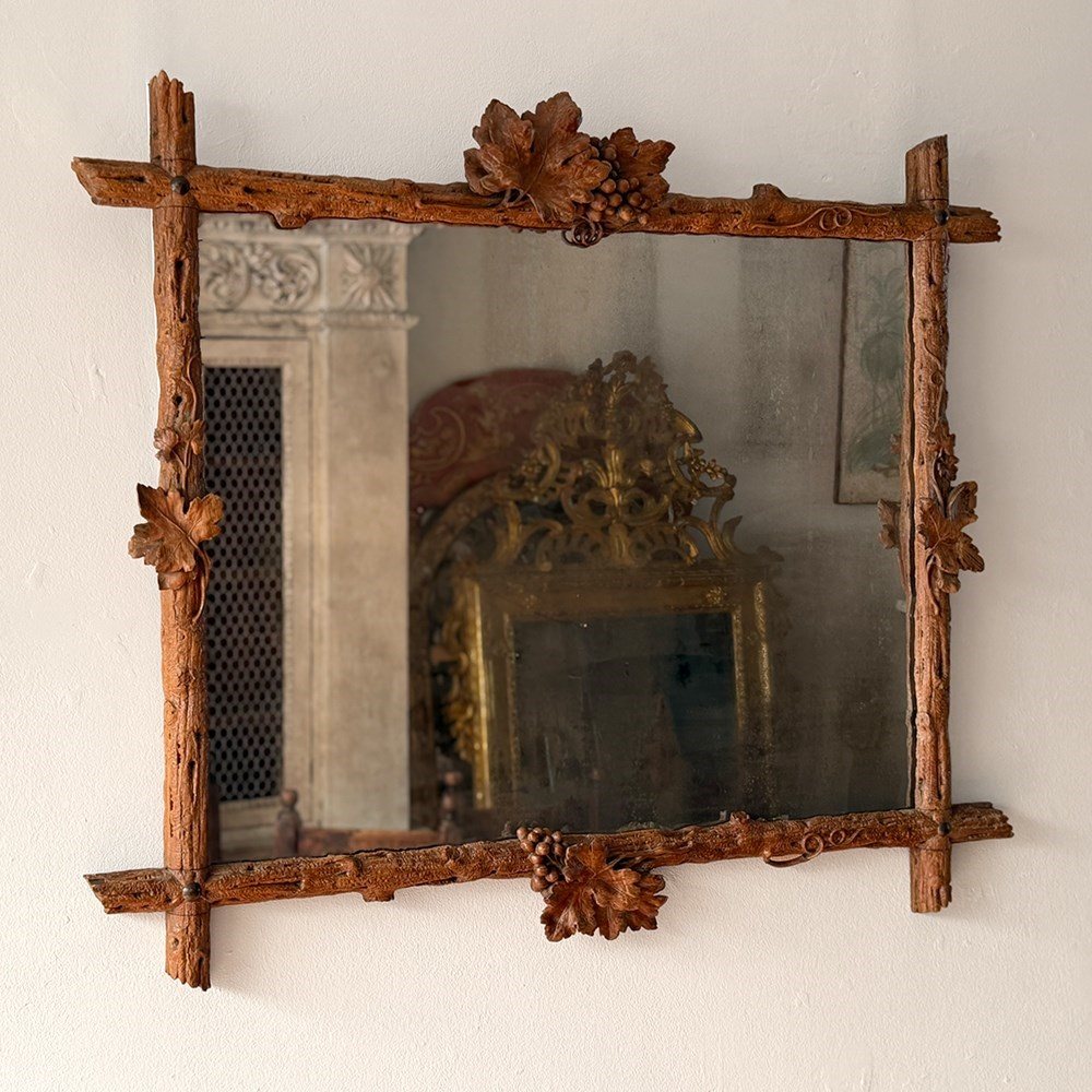 A Pair Of 19Th C Italian Folk Art Carved Vine Mirrors