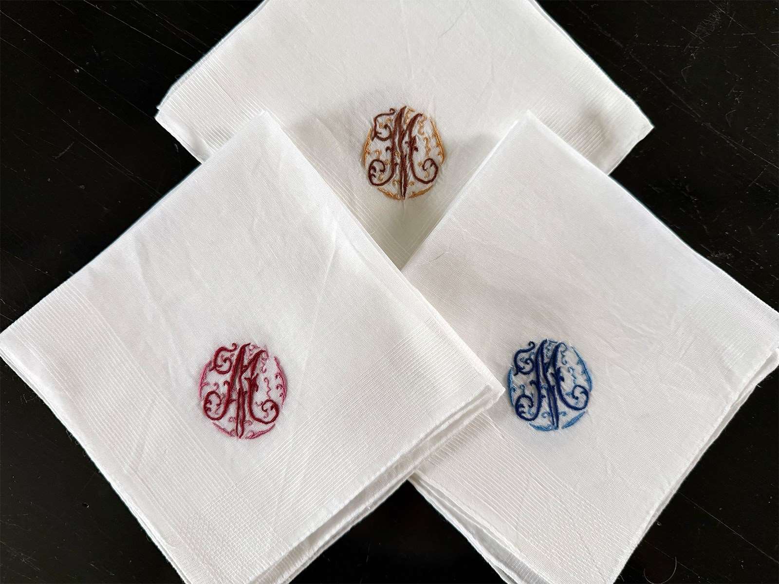 A Set Of Four Antique Monogrammed Handkerchiefs With 'M' Embroidery