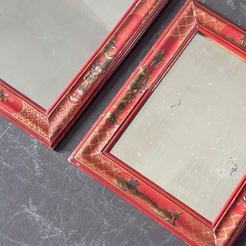 A Small Pair Of 1950'S Red Chinoiserie Mirrors