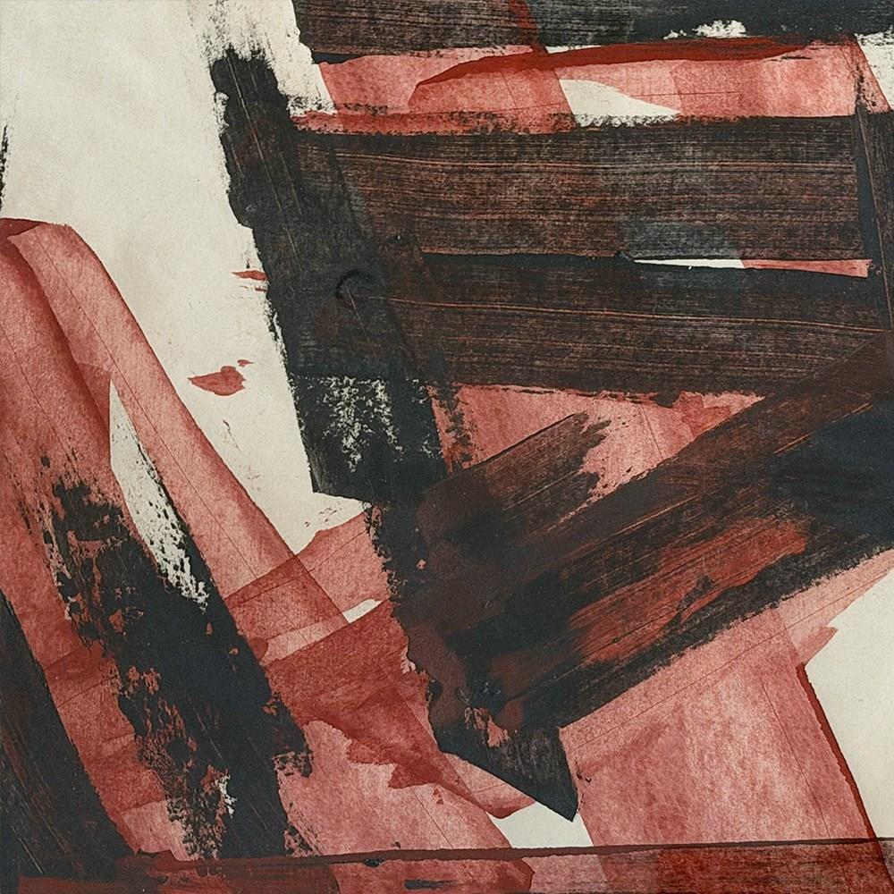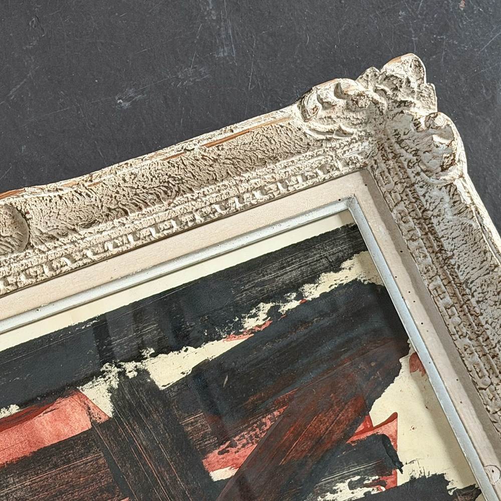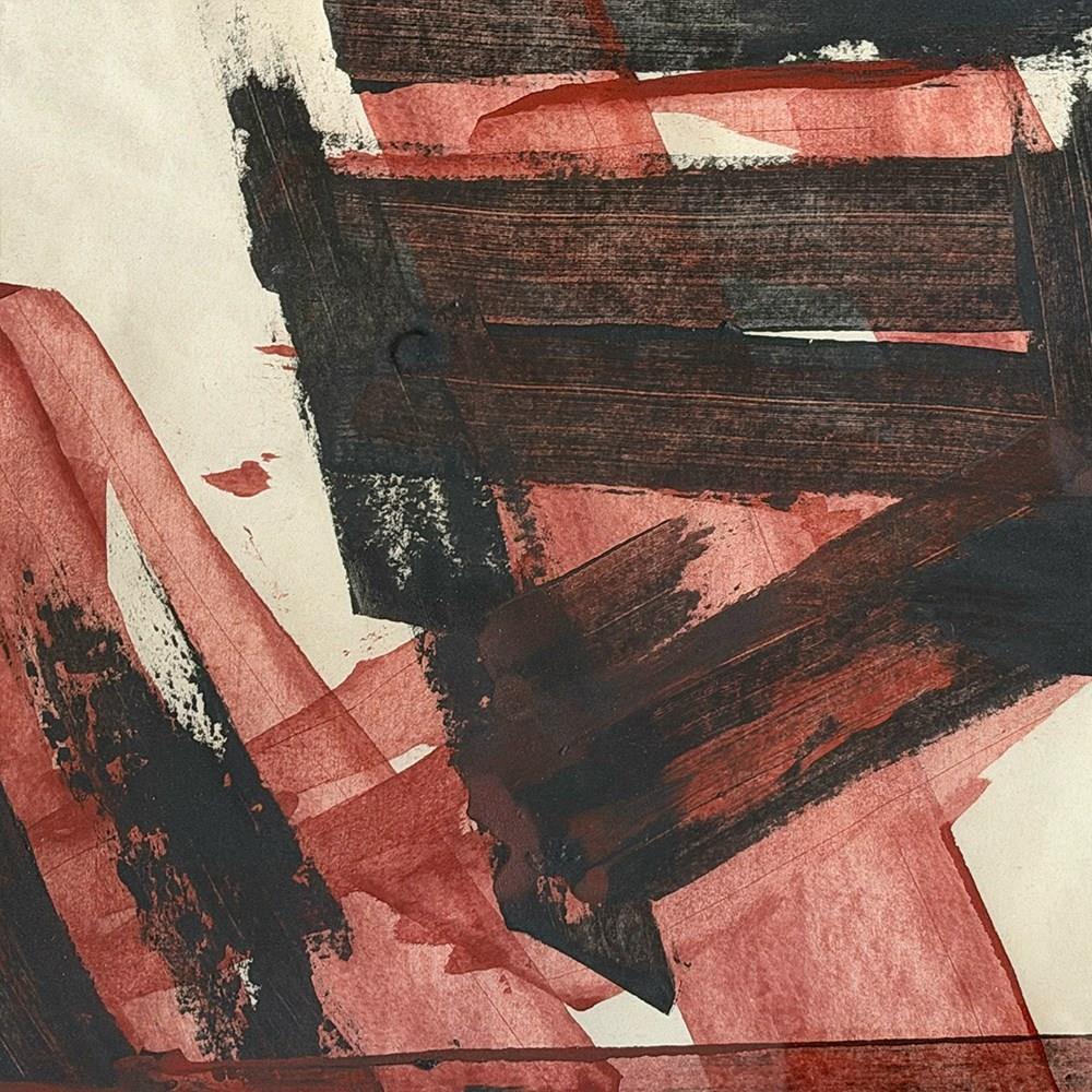 A Vintage French Abstract Red & Black Abstract Artwork In Montparnasse Frame