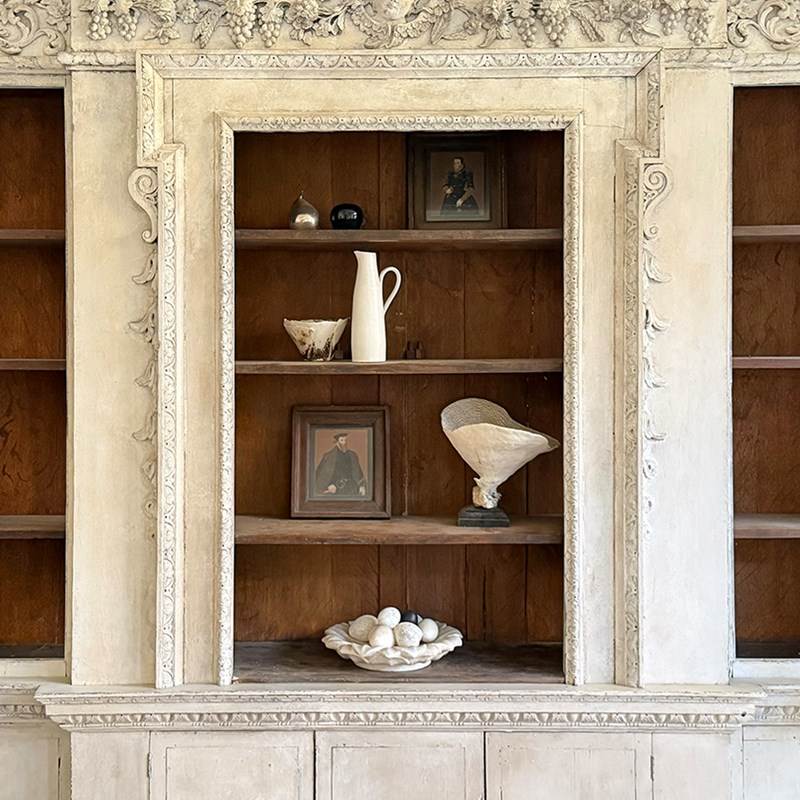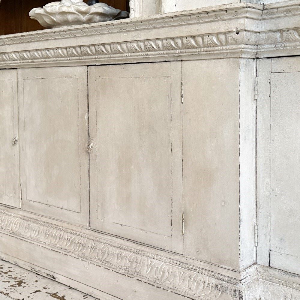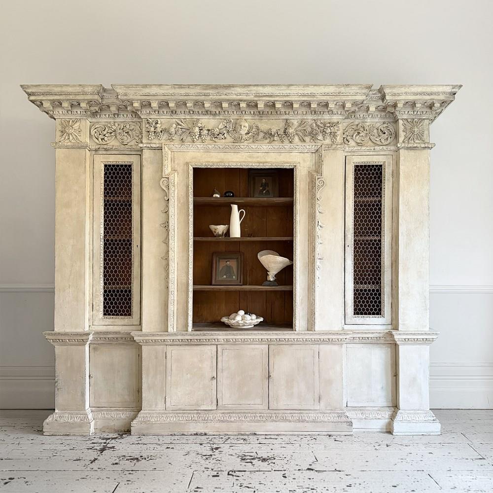 The use of Baccic elements in the cornice might indicate that this bookcase might have been intended for a dining room.