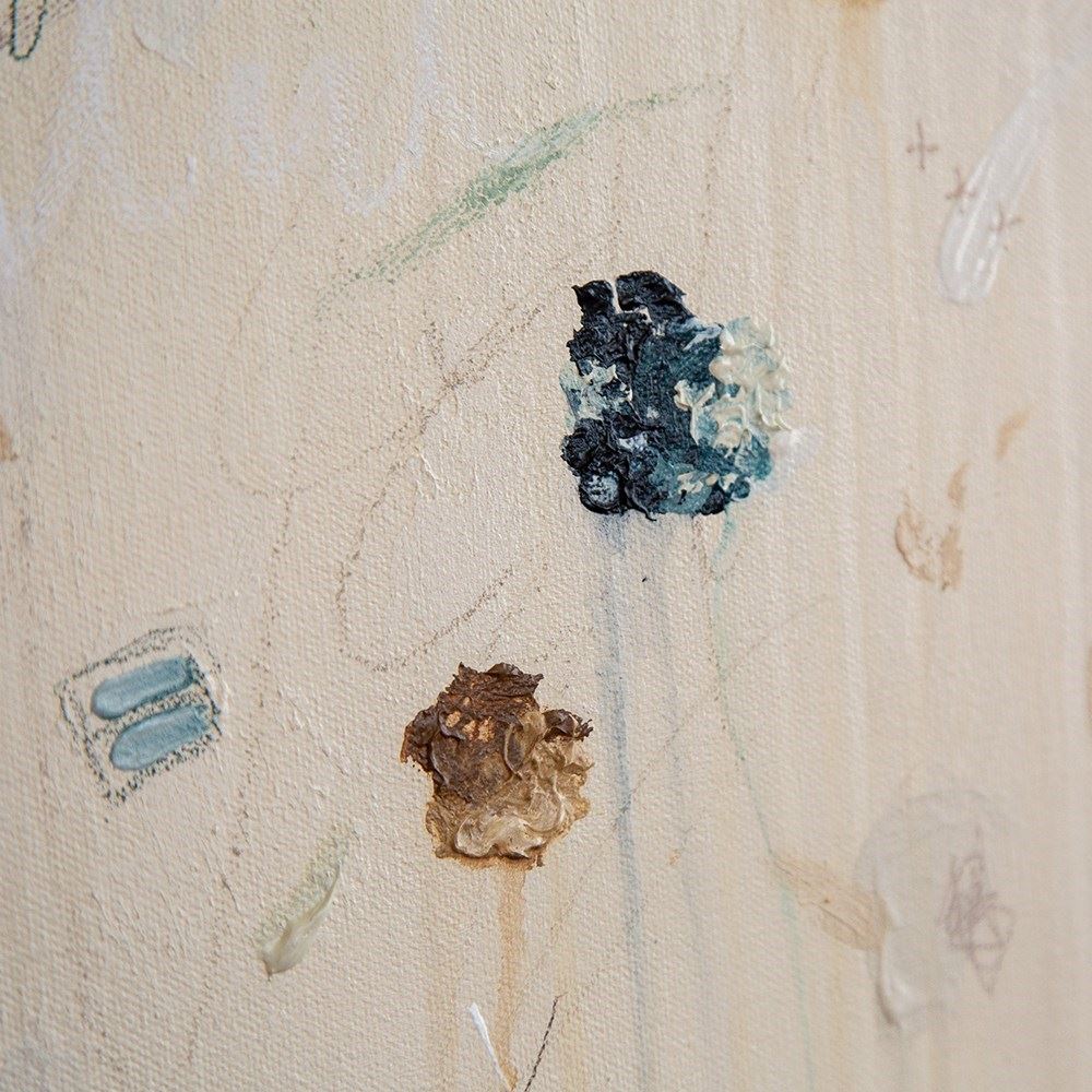 Medium: Oil pastel, acrylic, graphite, embroidery