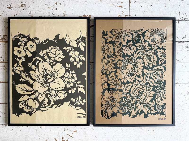 Framed 1950'S Zuber Block Printed Wallpaper Samples - F