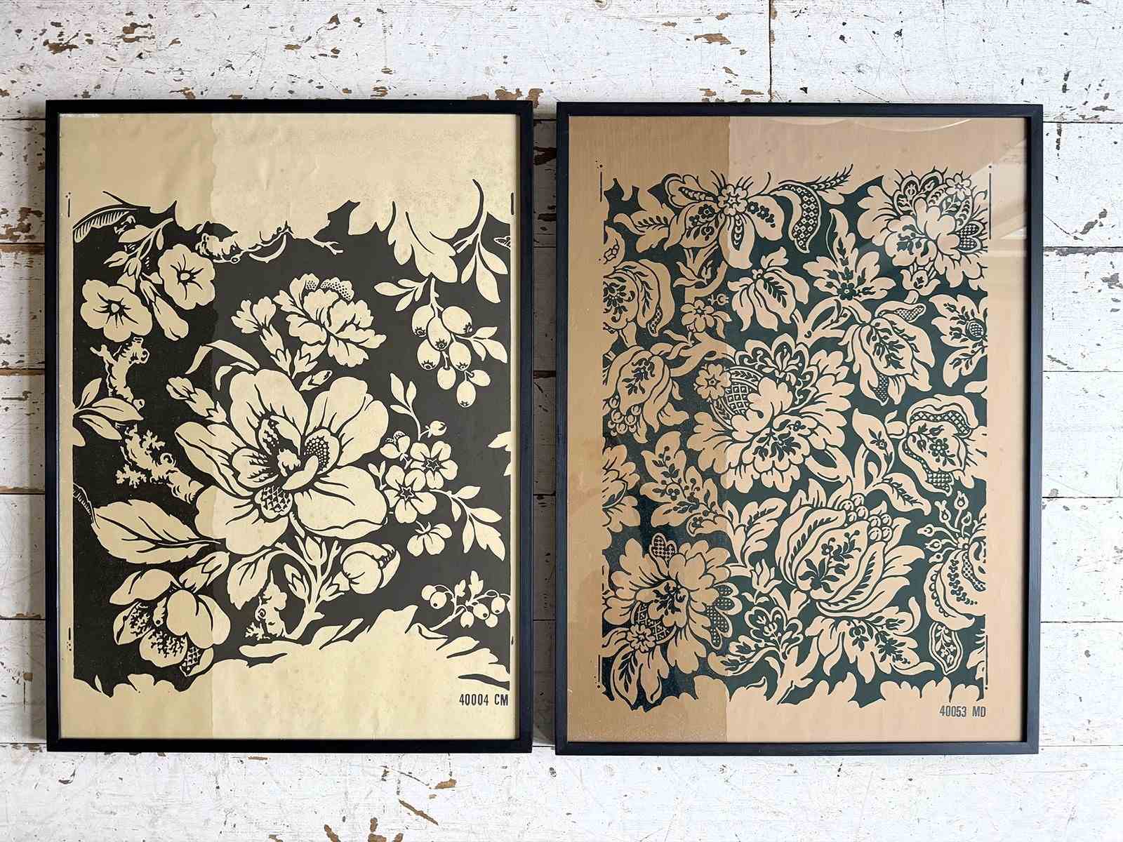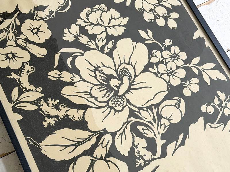 We were excited to find this large 1950's Zuber sample book containing page after page of beautiful Zuber wallpaper designs, hand block printed in wonderful colourways. We have selected eight of these samples and framed them in simple, contemporary frames. Some of them include a strip of the sample with a glazed coating. Because of their large size, these pieces are wonderful as a stand artwork and even better in a group.