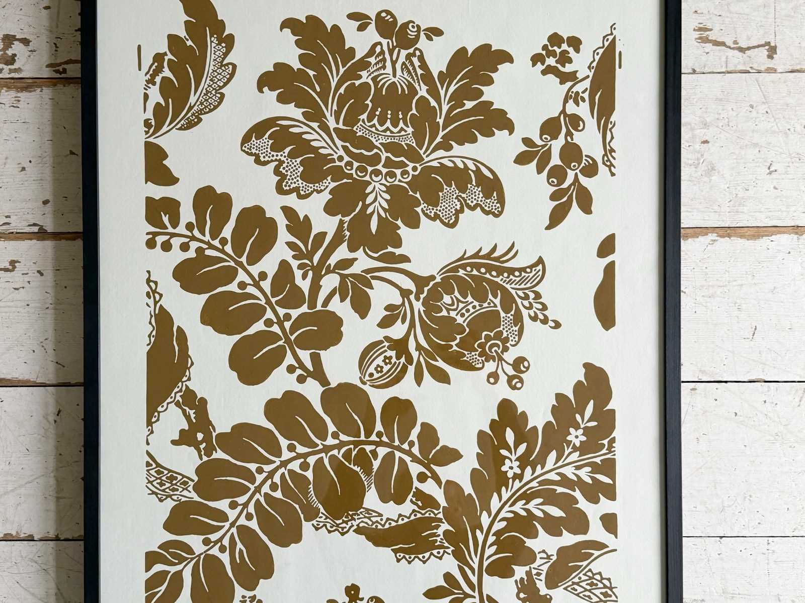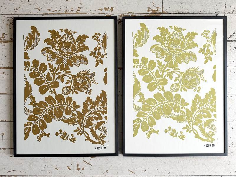 We were excited to find this large 1950's Zuber sample book containing page after page of beautiful Zuber wallpaper designs, hand block printed in wonderful colourways. We have selected eight of these samples and framed them in simple, contemporary frames. Some of them include a strip of the sample with a glazed coating. Because of their large size, these pieces are wonderful as a stand artwork and even better in a group.