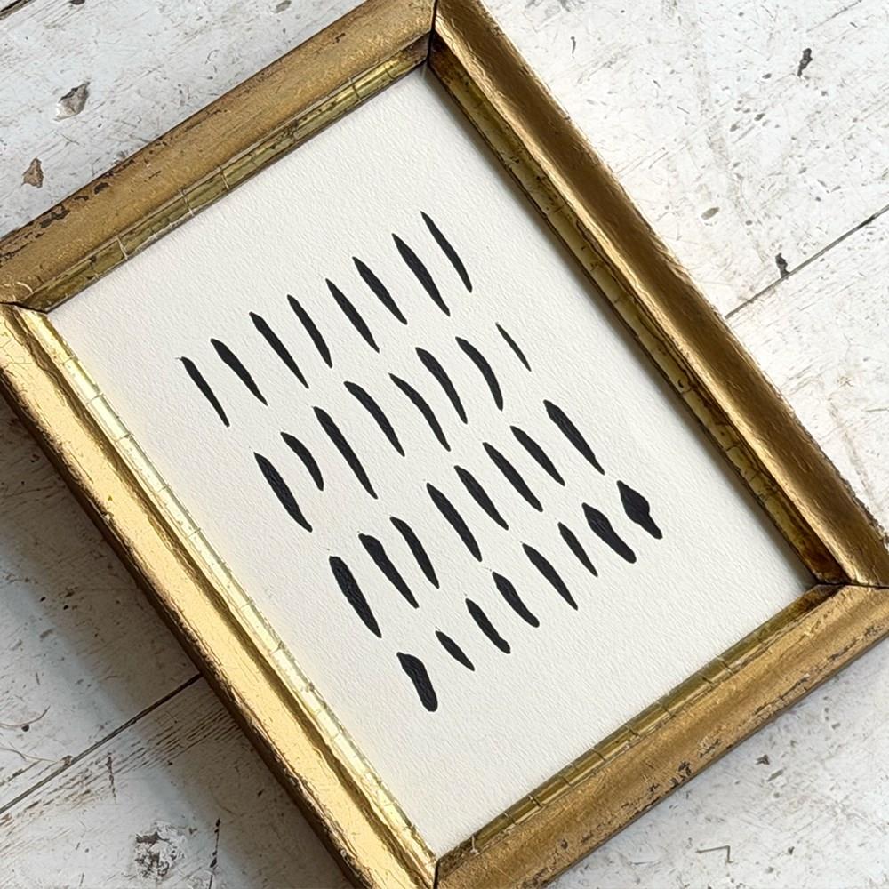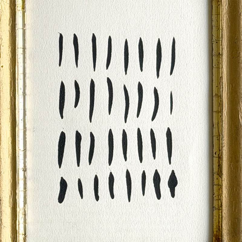 'Lines' - A Small Vintage Ink On Paper Abstract In Giltwood Frame H