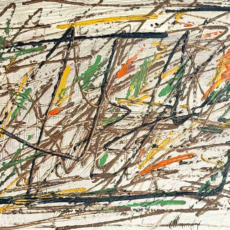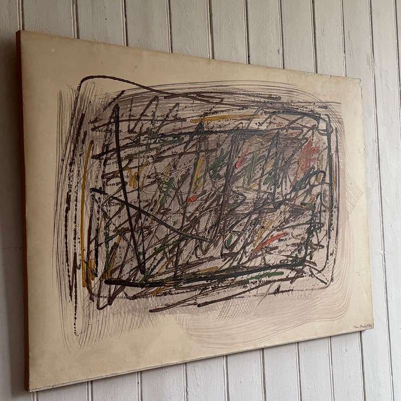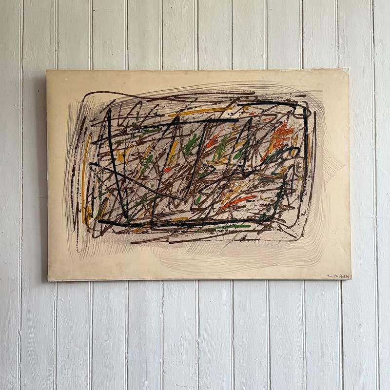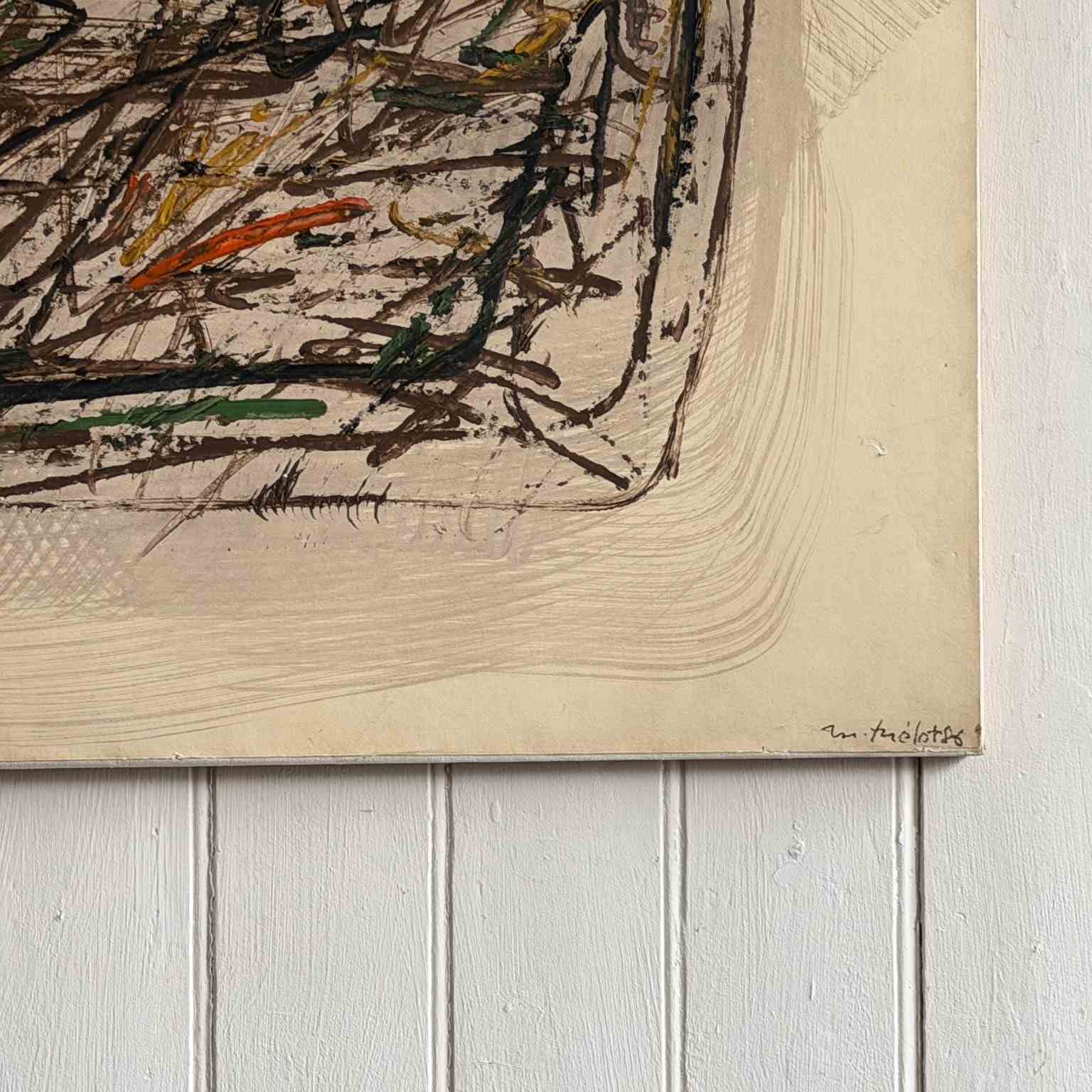 A 1980's untitled acrylic on paper mounted on canvas by Belgian artist Marcel Mélot (1909-2000).