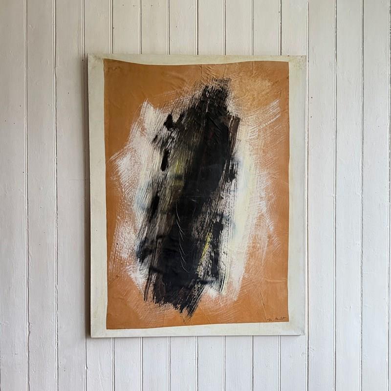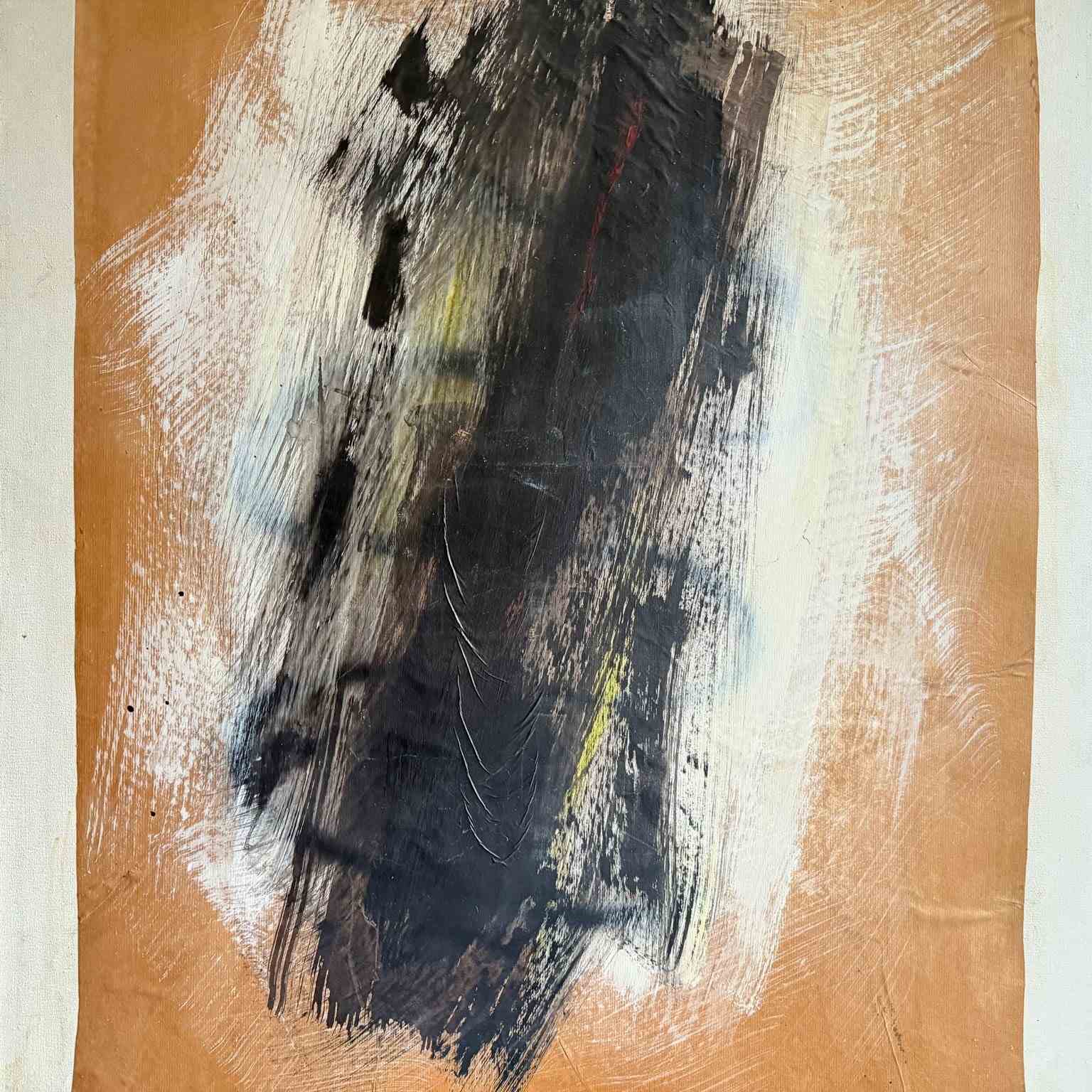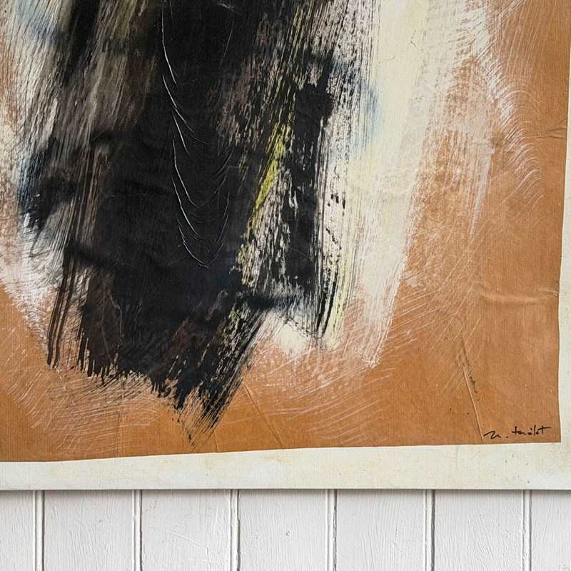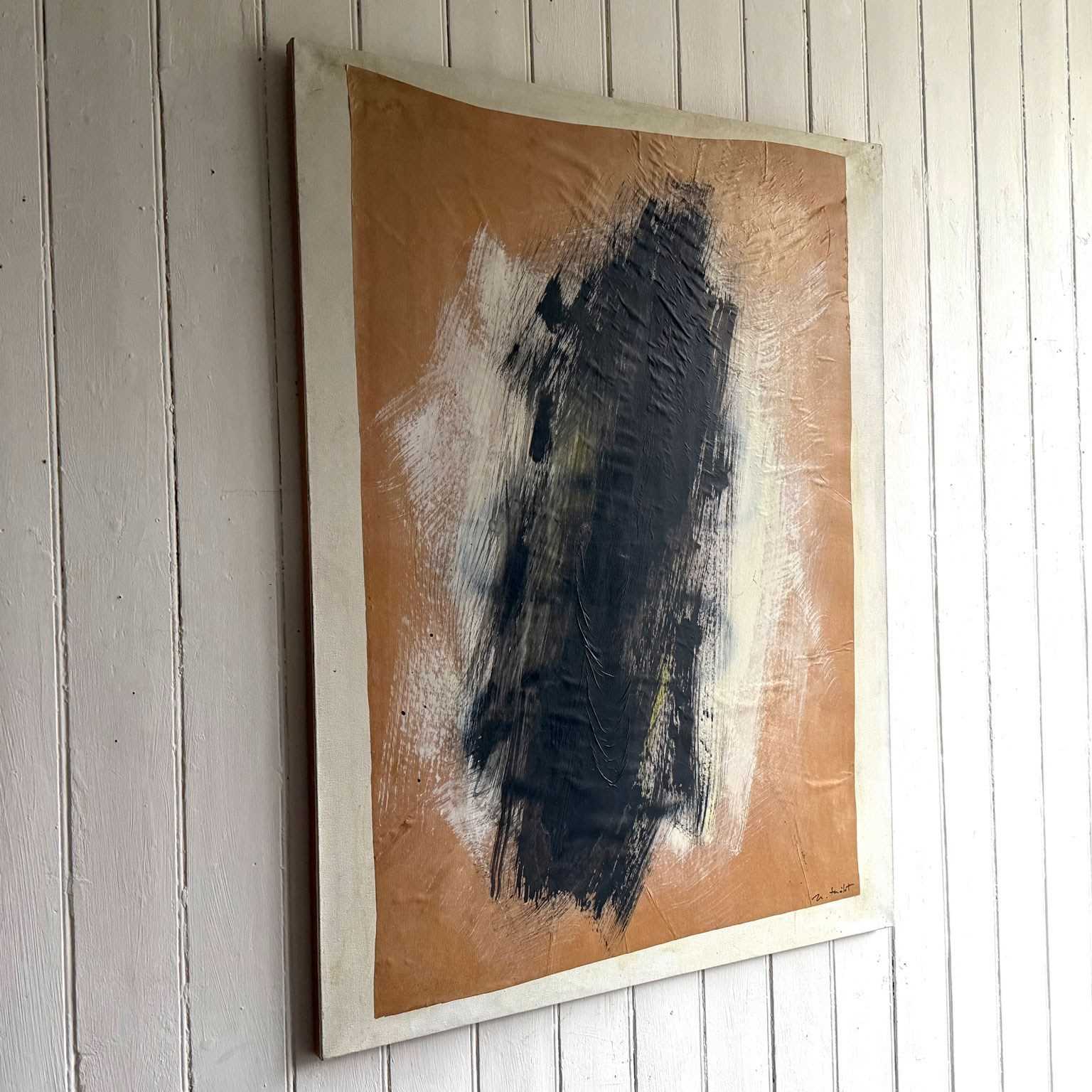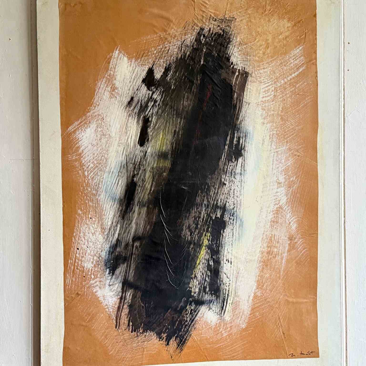 A large monochrome abstract on brown paper, mounted on canvas by Belgian artist Marcel Mélot (1909-2000).