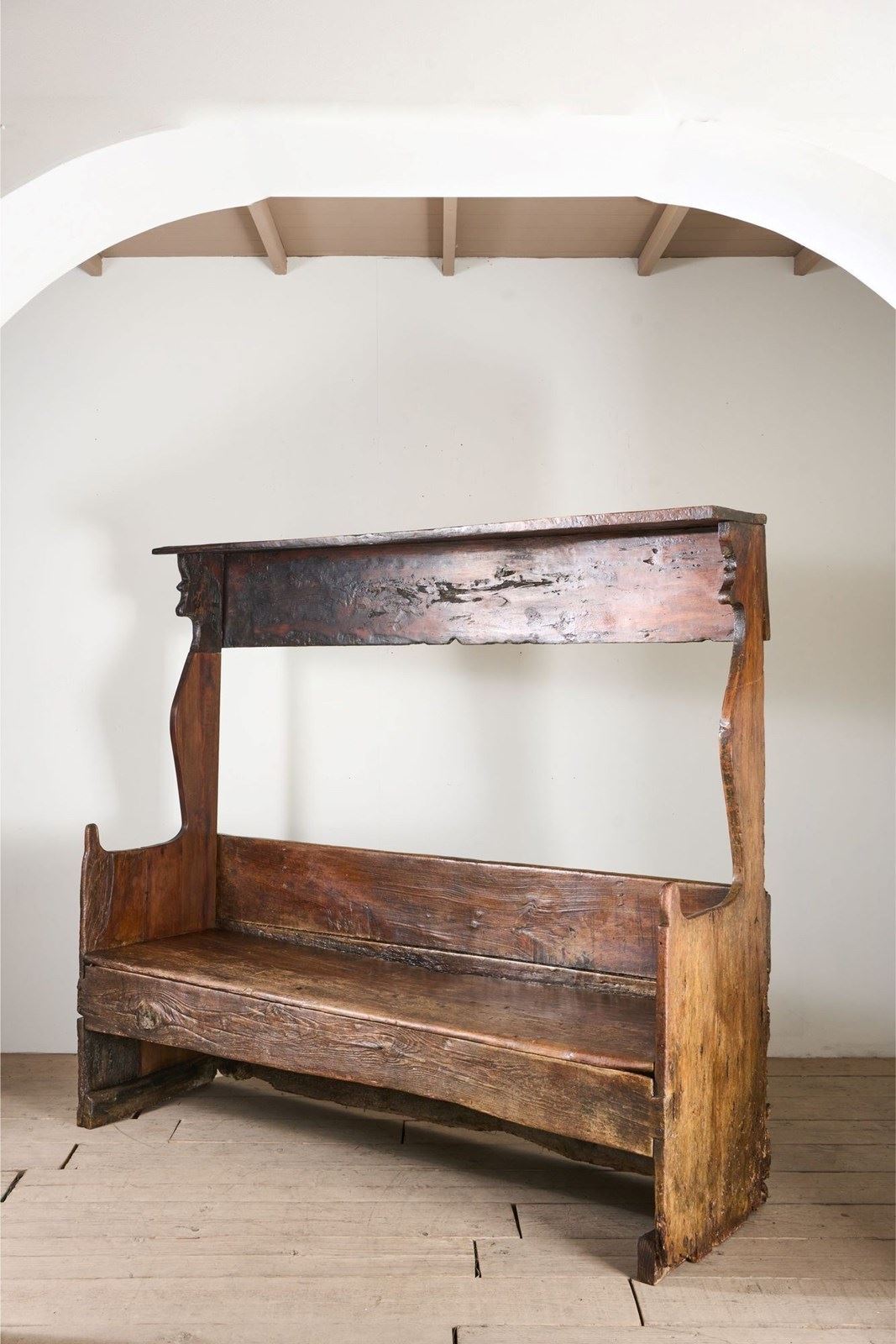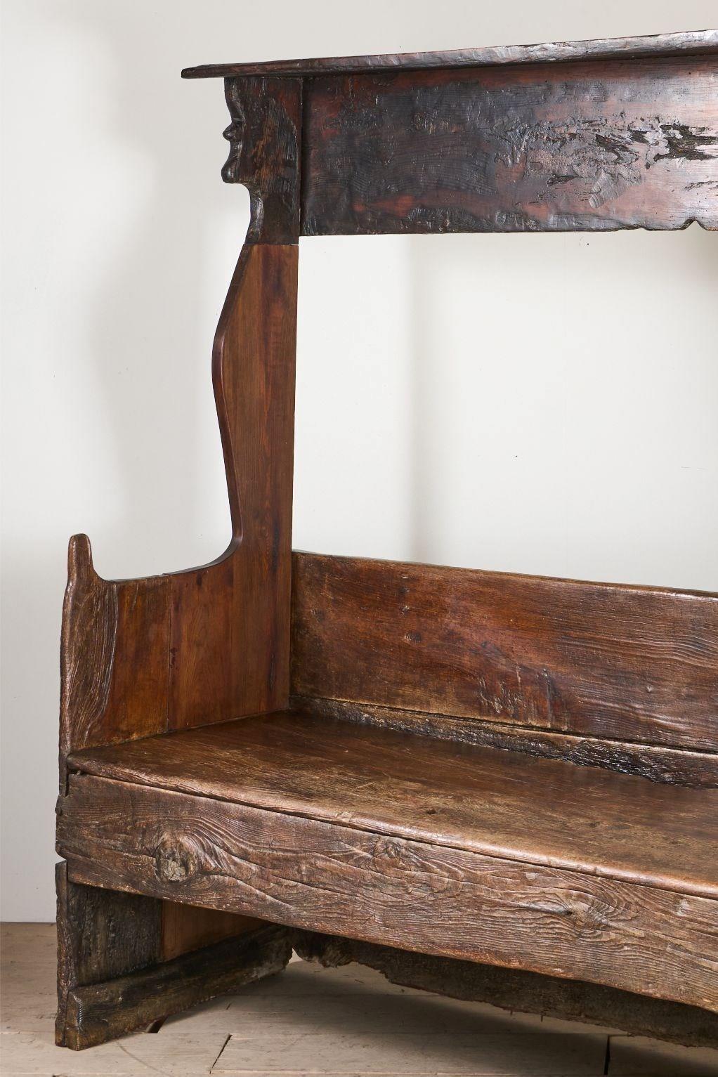 18Th Century Folk Art Canopied Spanish Settle