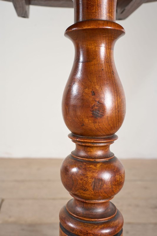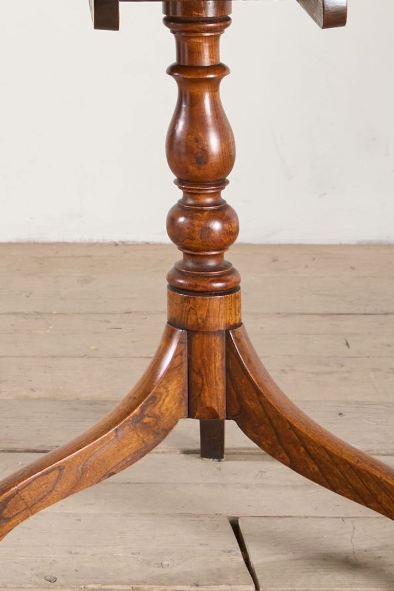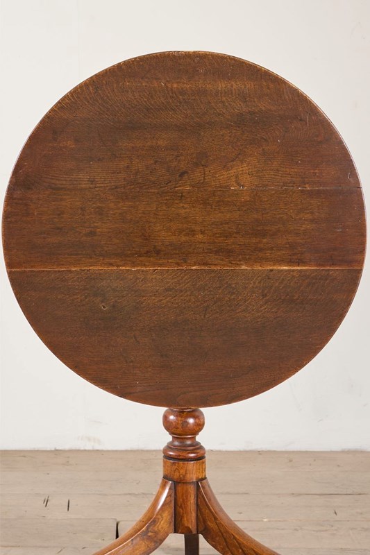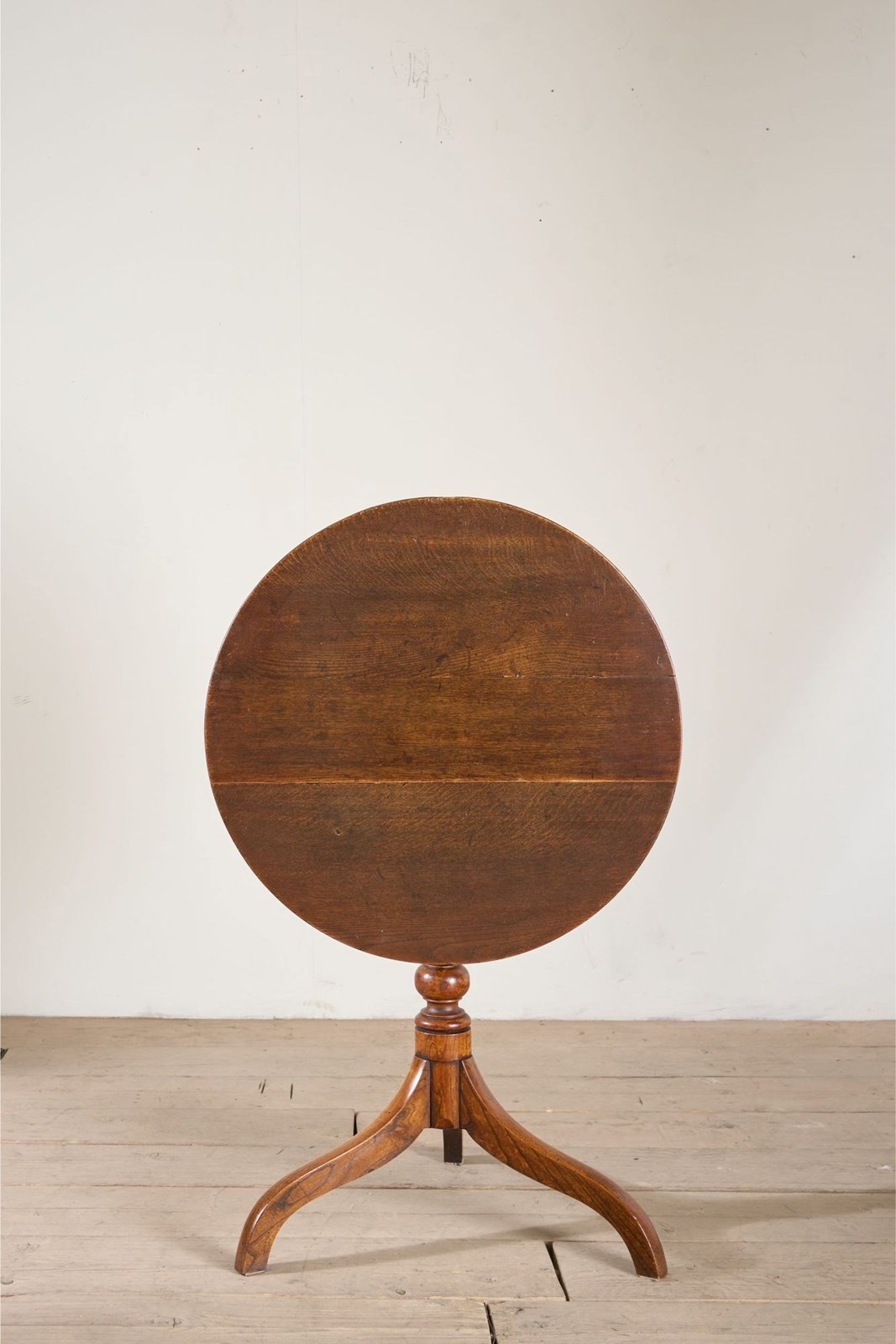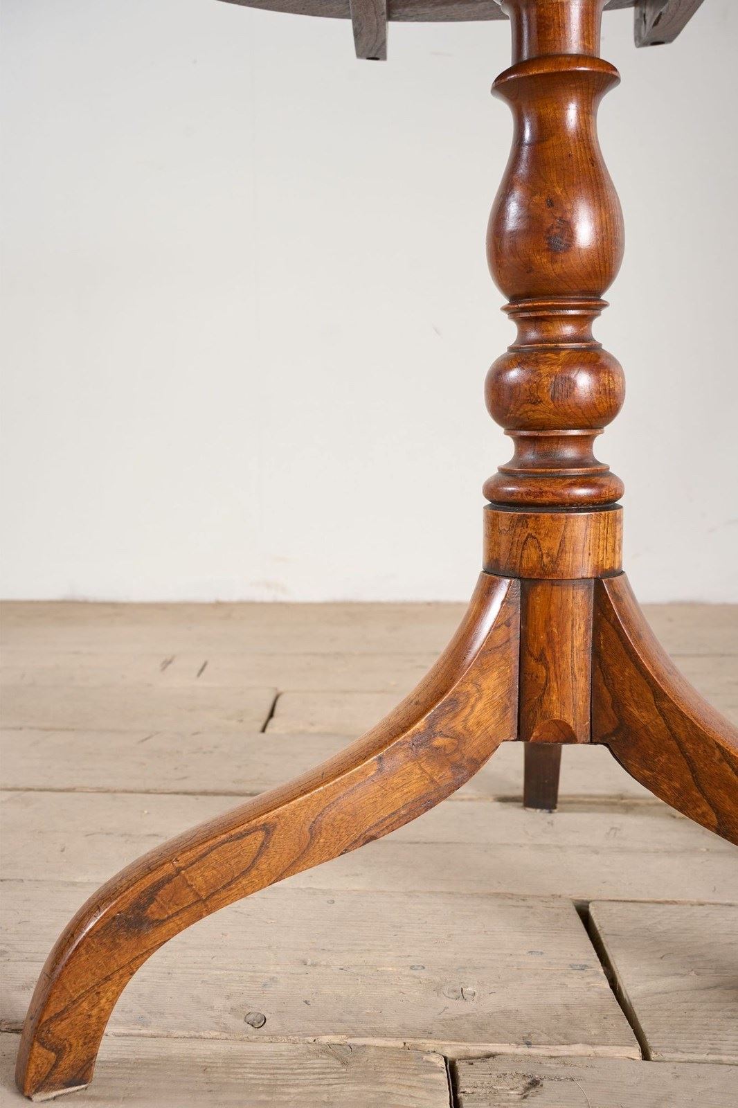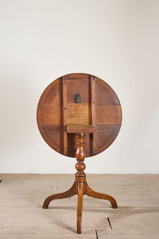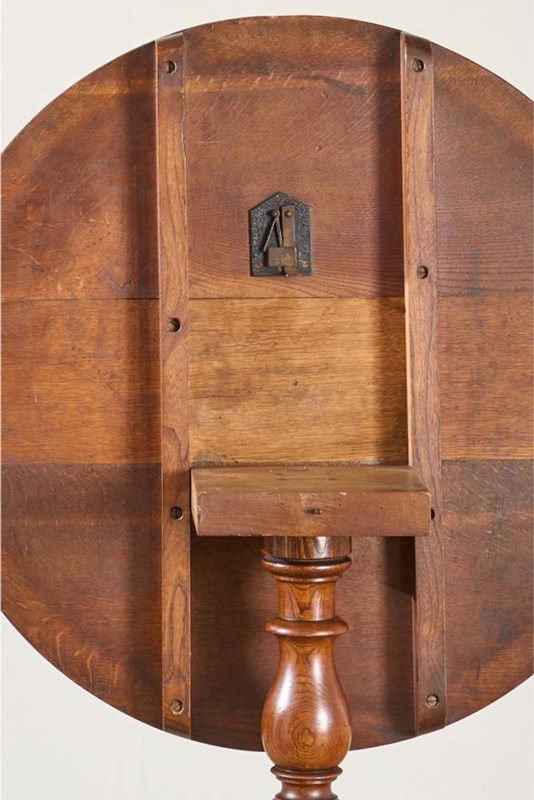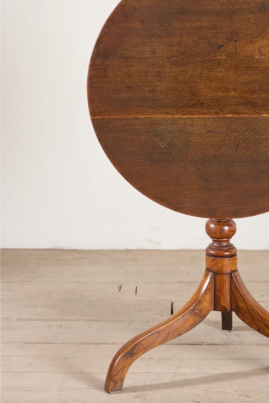 This is a lovely original 18th century elm and oak tilt top wine table. Lovely colour throughout and in very good condition. The top flips smoothly and locks in place with the original iron latch. The base is elm and the top is oak. Both with beautiful age related patina.