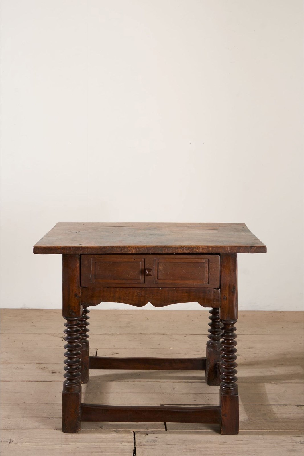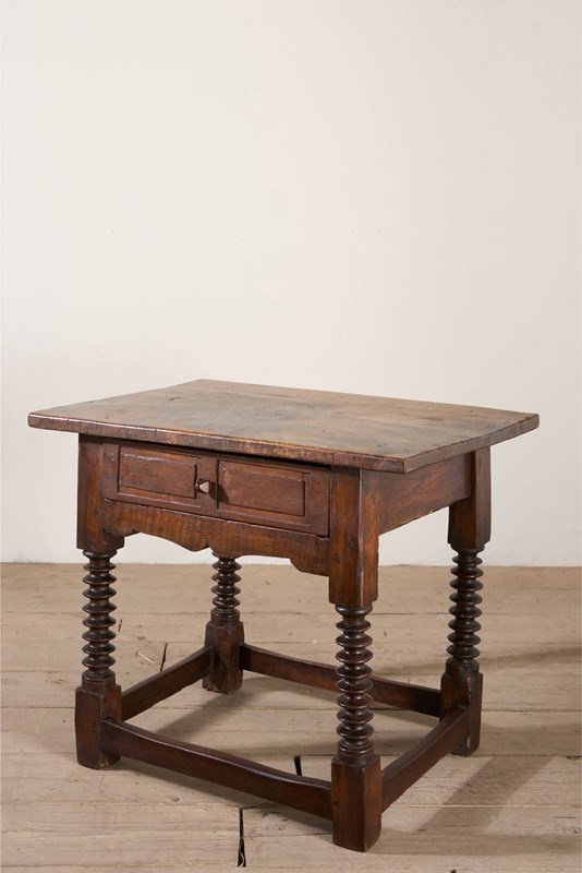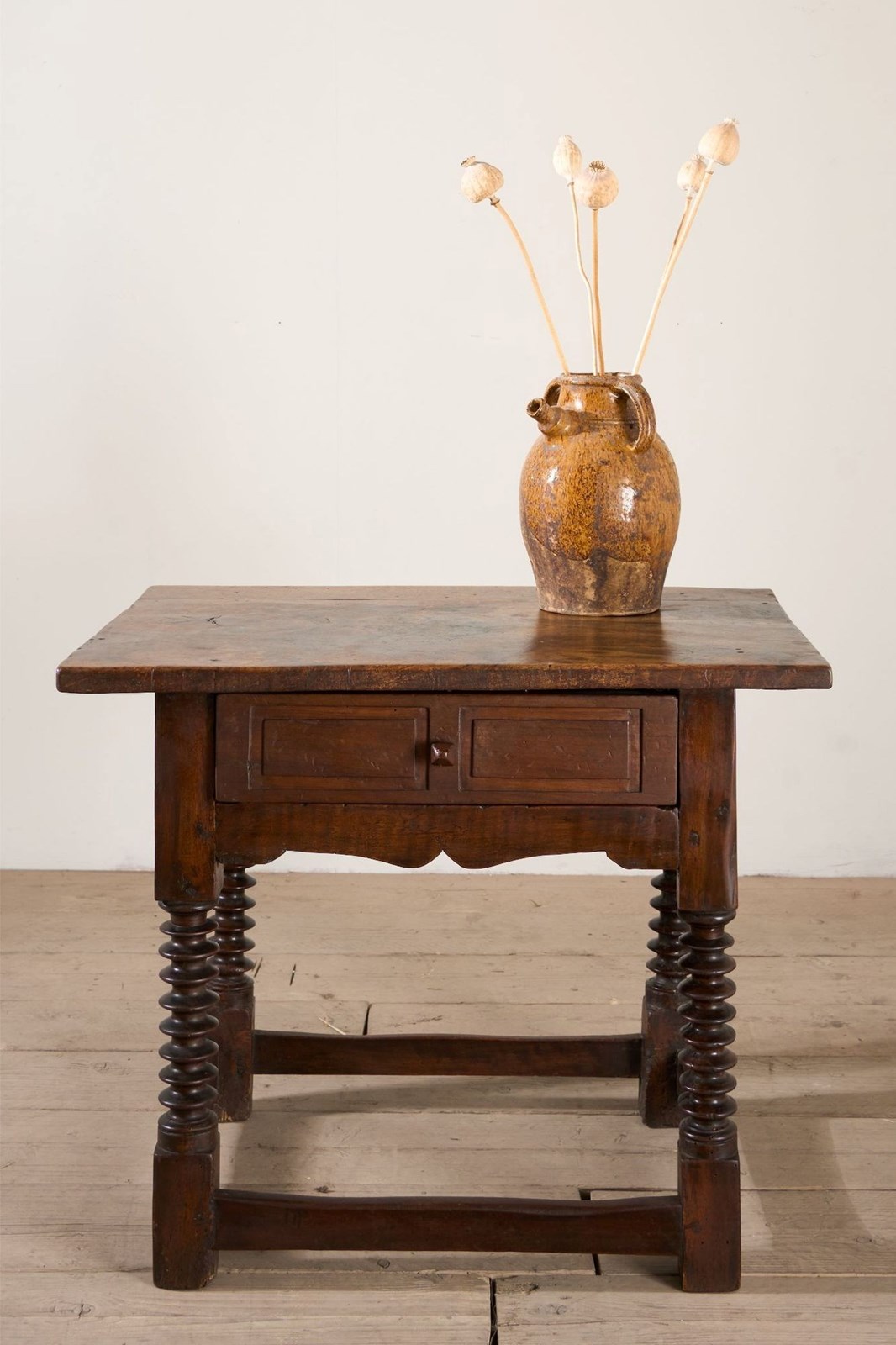 18Th Century Spanish Walnut Side Table With Bobbin Legs