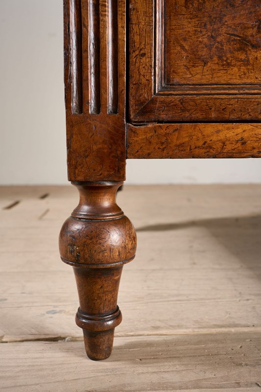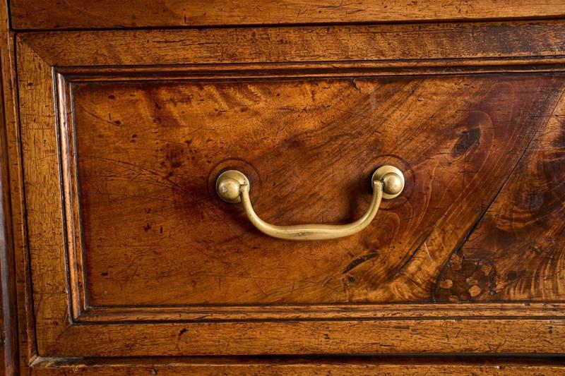 This is a fabulous 18th century Chest of drawers. Made from walnut with and elm top. The colour is delicious and has such a wonderful warmth to it. The patina all over is superb and the quality is very impressive. The base being walnut has great figuring and the design with reeded sides and carved feet make this extremely elegant. There are also panels of elm on the front and the sides which is a lovely touch. Deep elm lined drawers and heavy brass handles reinforce the quality of the piece. The top is elm and the patina really sets the piece apart from others. No serious faults and the drawers run well.