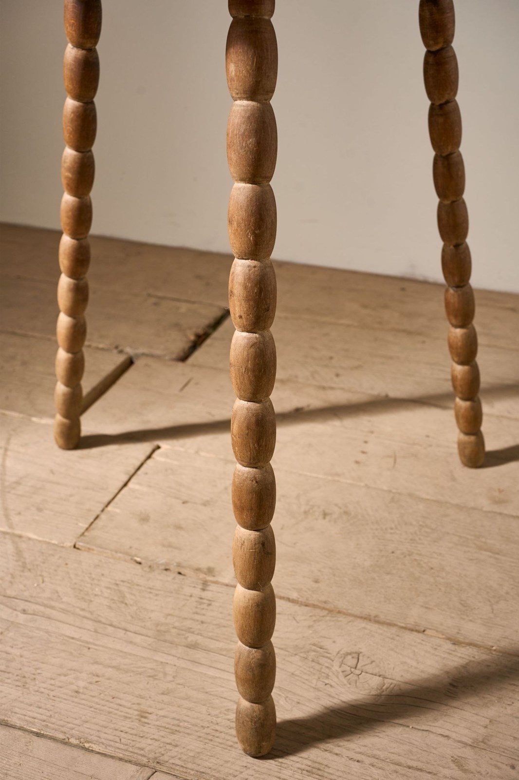 This is a very attractive, simple 19th century bobbin legged tripod table with single piece top. Overall condition is rustic, original and attractive, with no major faults and nice dry appearance. The legs are neatly turned bobbin which is always a popular design.