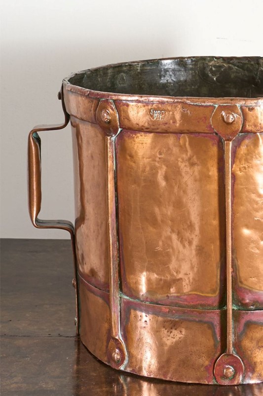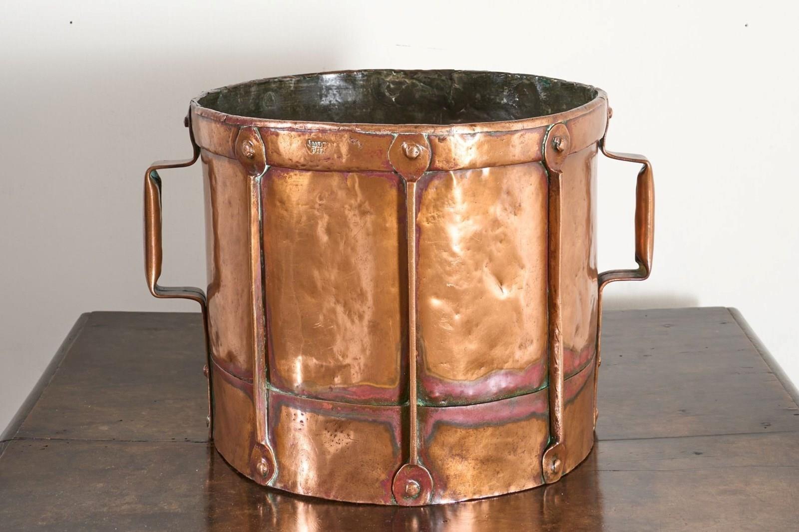 We have been fortunate to get a hold of 6 totally original and untouched 19th century Heavy copper grain measures. They have plenty of character and charm. The patina is fabulous and their misshapen appearance in parts just adds to their attraction. These would make great planters or ice buckets if you throw a lavish party.