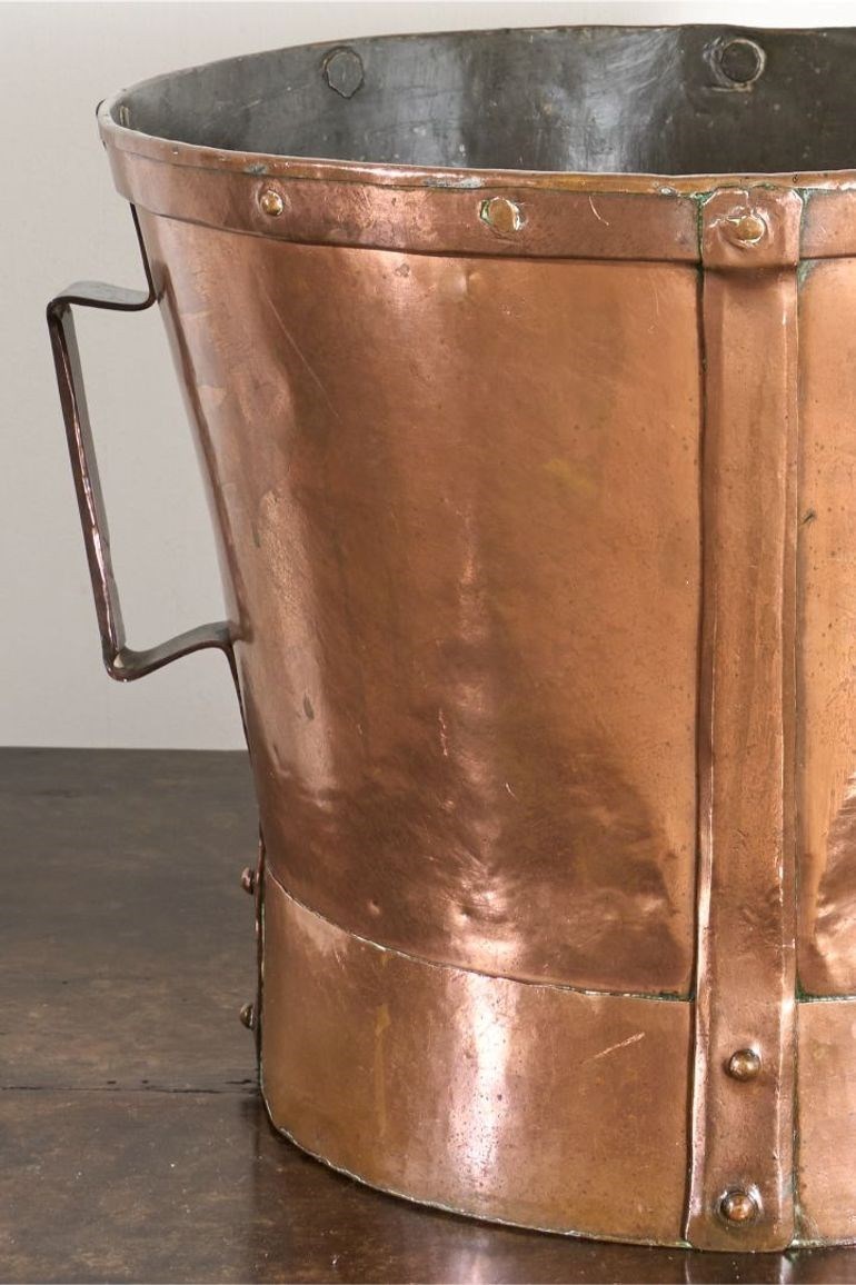 We have been fortunate to get a hold of 6 totally original and untouched 19th century Heavy copper grain measures. They have plenty of character and charm. The patina is fabulous and their misshapen appearance in parts just adds to their attraction. These would make great planters or ice buckets if you throw a lavish party.
