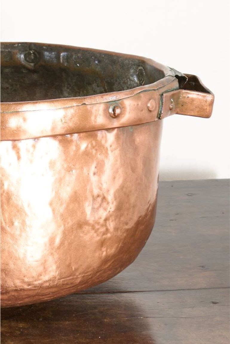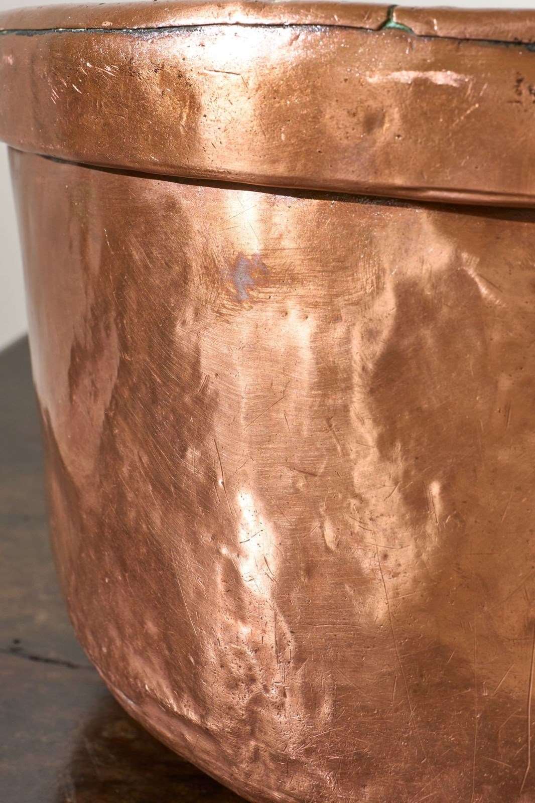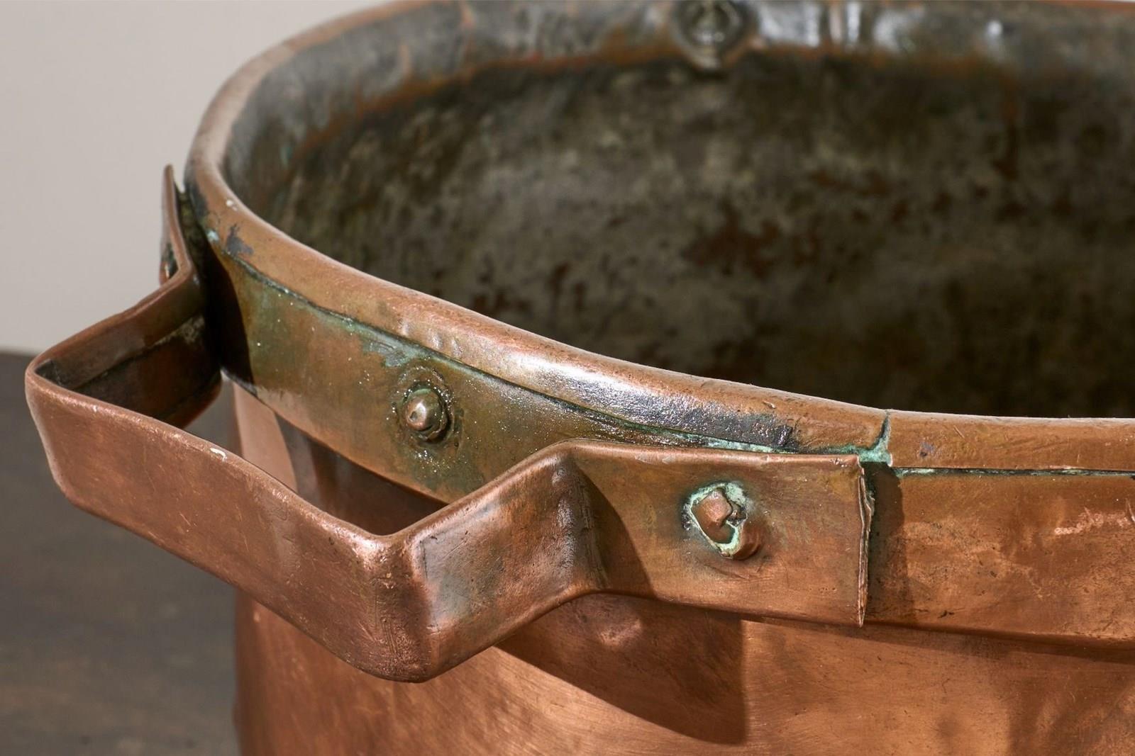 We have been fortunate to get a hold of 6 totally original and untouched 19th century Heavy copper grain measures. They have plenty of character and charm. The patina is fabulous and their misshapen appearance in parts just adds to their attraction. These would make great planters or ice buckets if you throw a lavish party.