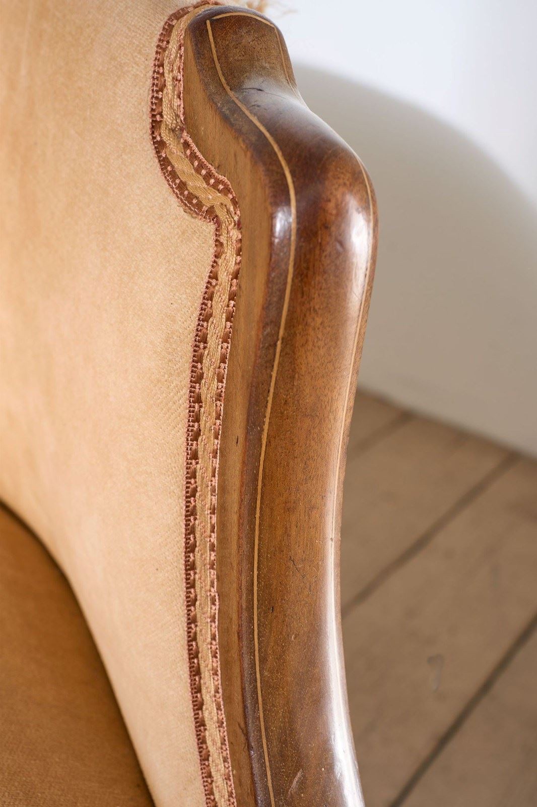 (On my website) If you would like this sofa upholstered please click yes in the upholstery drop down menu. This would require 8 metres of material. You can supply your own or please get in touch and we will send you the list of fabric companies we work with.