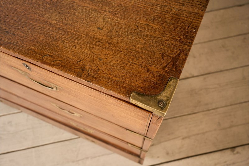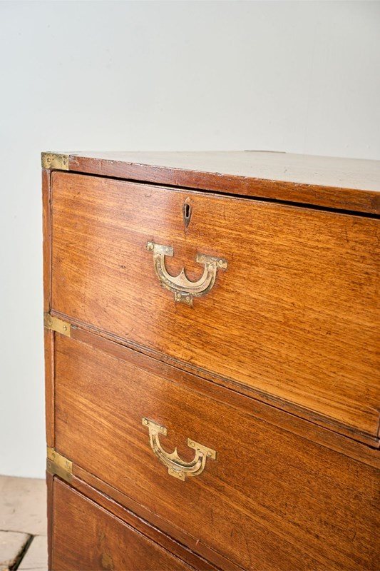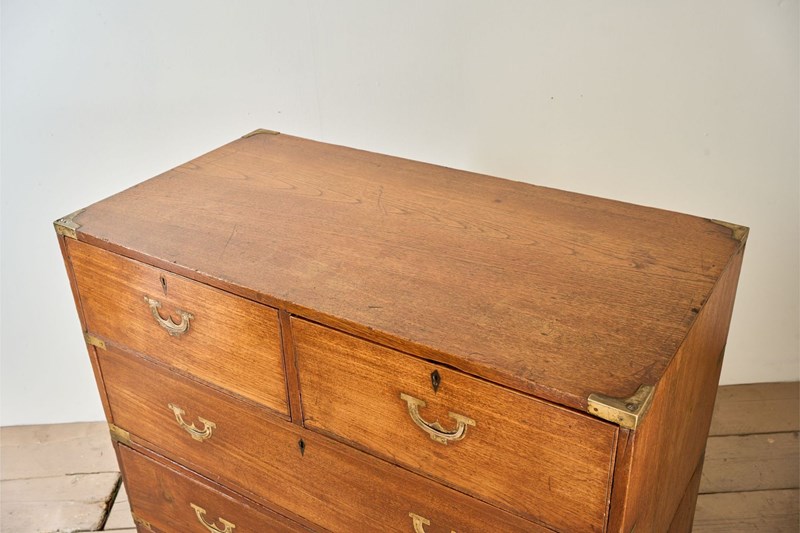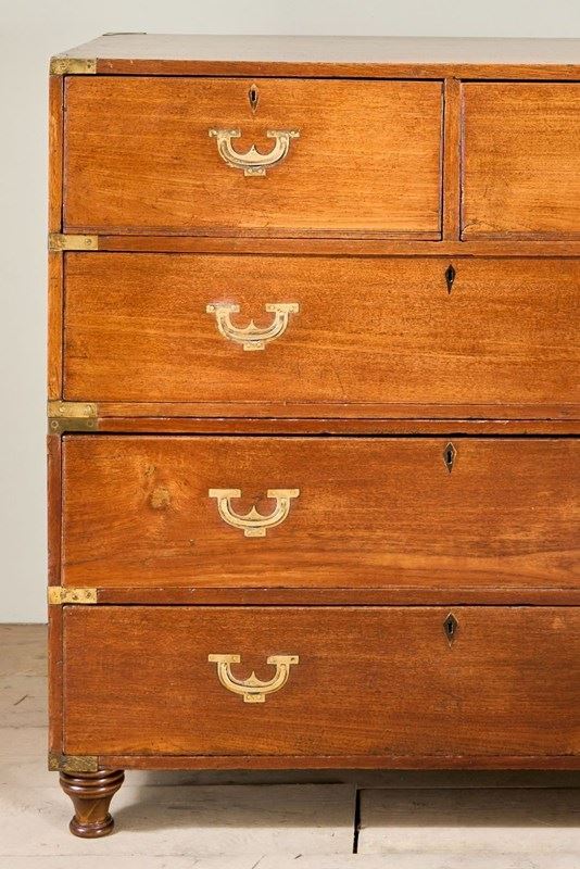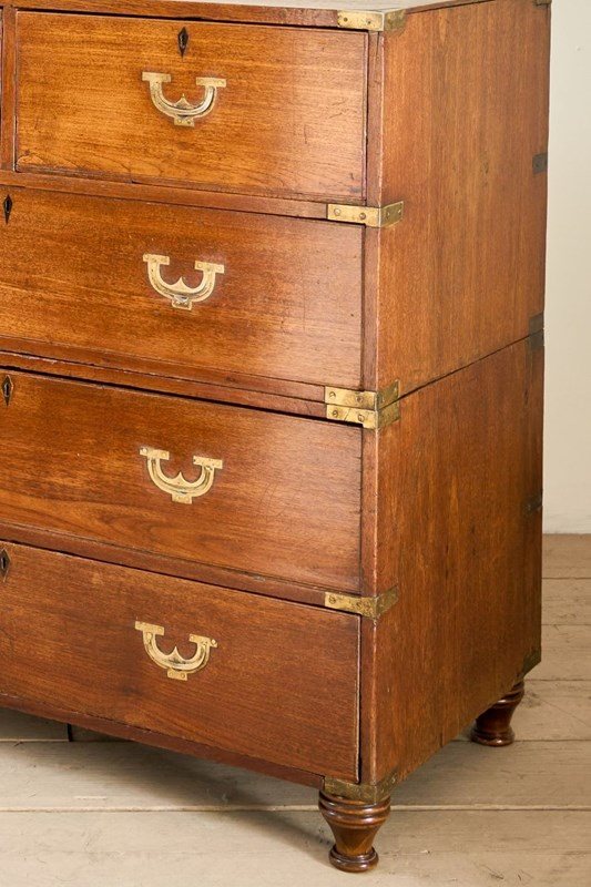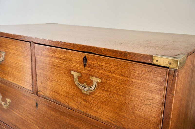 19Th Century Solid Teak Anglo-Indian Campaign Chest Of Drawers