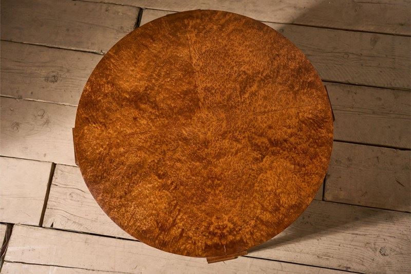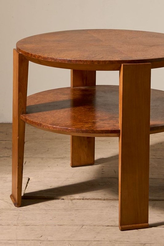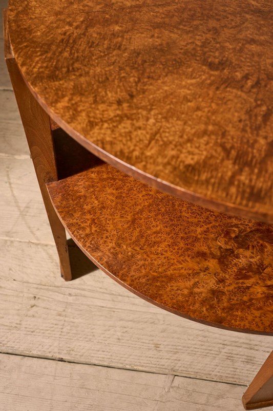 This is a very attractive and high quality all original Art Deco coffee table. The top and shelf are made from stunning Burr yew, with beautiful figuring and colour. The overall condition is very good with a few minor age related marks. The legs are a neat design but taper which shows the quality of the table. Weight is quite heavy for a relatively small table also. Ideal as a coffee or a side table.
