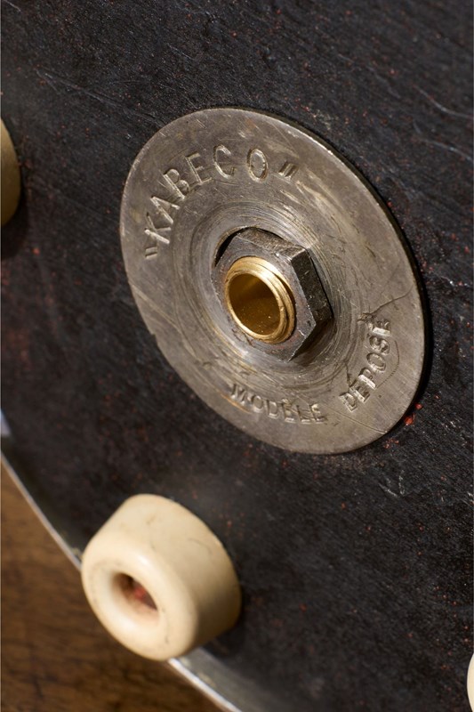 This is a totally original heavy chrome desk lamp by Kabeco. Art Deco in period and condition is stunning. Rare to see one in such good original condition. The size is also very neat and ideal on a desk or console. The design is the iconic mushroom shape which one again don't come up very often. The original flick switch still works with a satisfying click.
