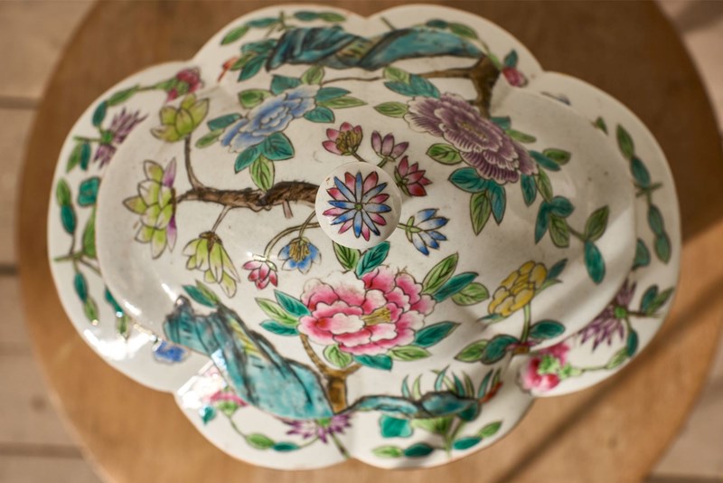 This is a very attractive early 20th century Chinese porcelain Famille rose Ginger jar. The decoration is striking with strong use of colour, large Pheasants and floral boarders. The condition is very clean and there are no chips or major issues. The top is finely painted and shaped perfectly with the base. The size also makes this very decorative. Stamped to the underside.