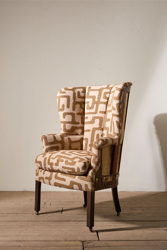 Georgian Barrel Back Armchair Upholstered In Recycled Cotton Fabric