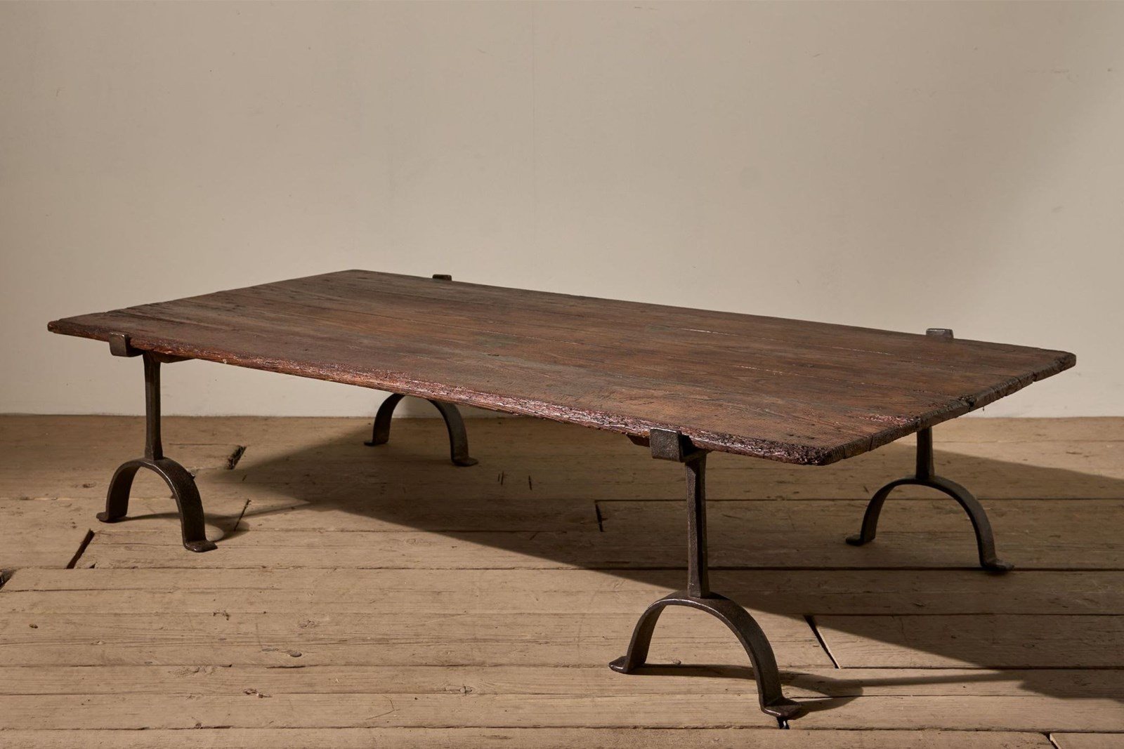 This is a great looking large scale 18th century trestle coffee table. The timber is of period as well. The tresltes are beautifully made with a wonderful patina. Great design aesthetic and the scale makes it a real statement in a room. Plenty of character as well.
