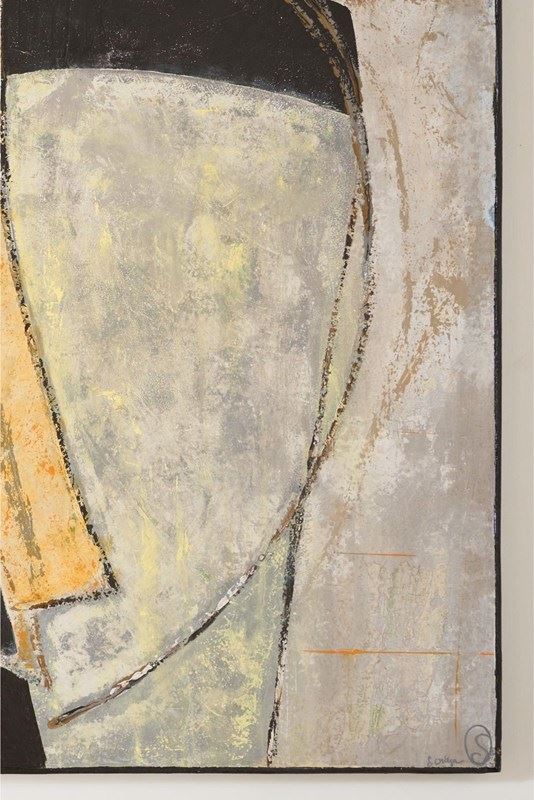 On our last buying trip to France we met Sylvia by chance and got talking about her interest in antiques and the fact she was an artist. We looked at her work and I fell in love with it immediately. She works with acrylic paint mixed with gesso and paints onto board giving her artwork a wonderful thickness and texture.