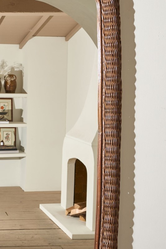 Large Vintage Italian Wicker Wall Mirror - Brown