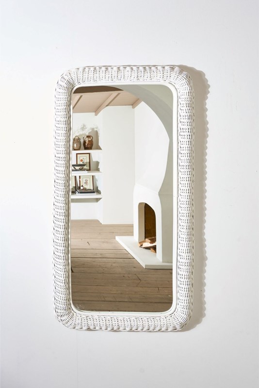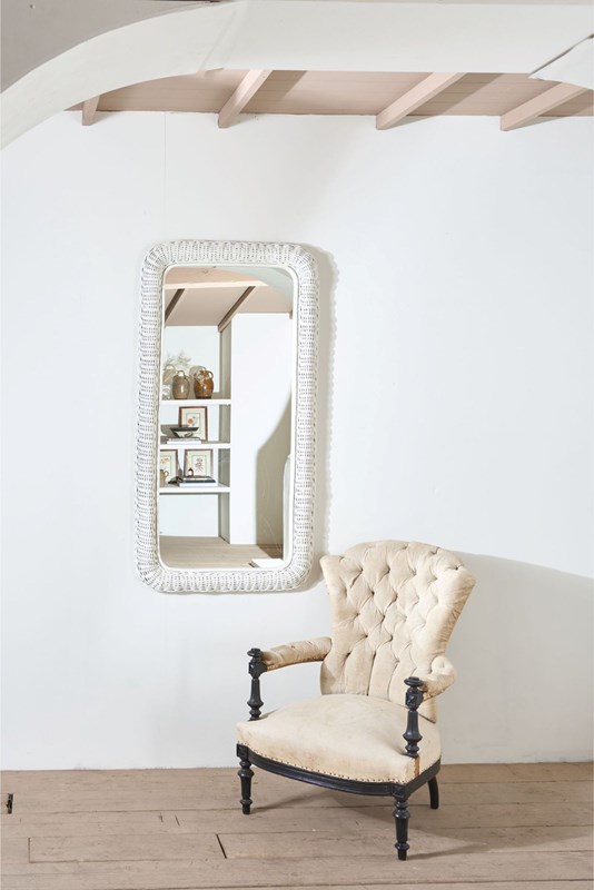 This is a very nice quality large vintage Italian wall mirror made from woven wicker. Classic design that will work well in a huge number of interiors. Overall condition is very clean with heavy mirror plate. Some light age related scratches to the mirror plate. The frame allows the mirror to be hung both landscape or portrait.