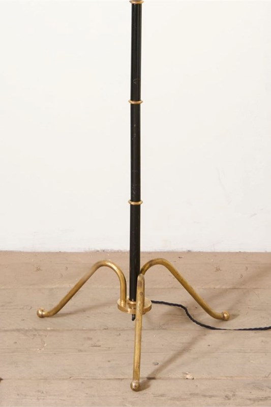 Mid 20Th Century Black Enamel And Brass Floor Lamp